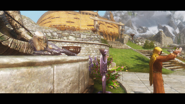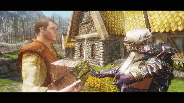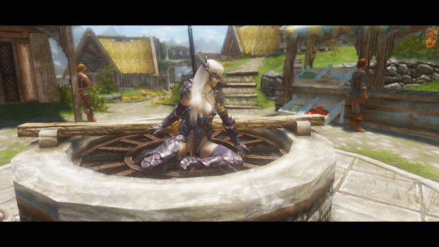 Мини рассказик, навеянный модом на фалмерскую броню - бикини. ![]() - Ну что ? Это он?! - Пыхтелка завозилась на плече. - Не знаю... - Снежинка грустно повесила уши. - Мама говорила что он высокий. - Так он высокий!!! - Пыхтелка от нетерпения шустро перебирала лапками. - Гораздо выше тебя. - И гладкий... - Протянула снежинка. - Потрогай быстрее!!!! - Пыхтелка клацнула зубками. Выпускать ядовитые чернила она еще не умела и очень этого стеснялась. - Если это он - хватай и бегом к маме! - А может.... - Неуверенно протянула Снежинка. - Не может! На нас и так все смотрят...Чувствую каждой пластинкой...Трогай , не раздумывай. Девушка нерешительно протянула руку. ![]() - Ну что ?! - Пыхтелка заерзала, переступая лапками , отплевываясь от длинных волос своей спутницы. - Шершавый , твердый и ... деревянный.- Ответила девушка. ![]() - Не он.... - Пыхтелка втянула усики в пасть - пожевала. - Все пошли дальше. И они пошли. Оставляя за спиной растерянного мужчину с охапкой дров. - Смотри! Тоесть прочувствуй - здесь много народа! - Пыхтелка вытянула шею и заскрежетала молодыми, но уже твердыми ротовыми пластинами. - Мы обязательно его найдем. - Да. - Девушка принюхалась. - Пойдем. - Пригнись! Тебя мать что ни чему не научила?!! - Ой... - Вот тебе и "ой"! Молодец, а теперь вперед! ![]() Короткие перебежки привели к цели. Девушка пошарила рукой перед собой. - Странно...Никого нет. - Пых, пых....Как же светло!!!! Пошли отсюда. Надо подумать. Лезь в убежище. - Ага. На полусогнутых дошли до колодца, оставив за спиной вытаращенные глаза и открытый рот молодого мужчины. Потрогали каменную кладку колодца и влезли сверху. - Подведем итоги. - Пыхтелка переползла повыше. - Он здесь, но мы его не нашли. Так? - Да. - Снежинка кивнула головой. ![]() - Ты точно знаешь что он здесь?- Пыхтелка деловито сновала с плеча на плечо. - Мама так сказала. - Девушка пожала плечами. - А она точно знает? - Ей сказали наши разведчики. - Тогда он здесь.... - Пыхтелка поймала пролетающую мимо мухи и быстренько съела. - Не крутись мы упадем. - Плохое убежище. - Извинилась девушка. - Дует, скользко и тянет водой. ![]() - Тогда ищем другое! - Скомандовала Пыхтелка, болезненно не любившая мыться. - Угу. Снежинка сползла с колодца и короткими перебежками проскользила к новому укрытию. - Стой!- Застрекотала Пыхтелка. - Что случилось? - Девушка с тревогой обнюхивала окружение. - Есть хочу. - Стыдливо призналась Пыхтелка. - Я тоже. - Тяжелый вздох и кончики ушей повисли сквозь волос, рука потянулась ко рту. ![]() - Не грызи ногти!!! - Пыхтелка всегда стремилась соблюдать приличия. - Не буду. - Молодец. Теперь протяни вперед руку. - Да. - Что там? - Что- то. И в нем лежит еще что - то. - Девушка подумала и добавила. - Круглое. ![]() - Оно съедобно? - Голод заставлял Пыхтелку подталкивать свою хозяйку к необдуманным поступкам. - Не знаю... - ТАК ПОПРОБУЙ!!!! - Чавк..хрум..чавк нам. ВКУСНО!!!!! - А МНЕ!!!!!! - Заволновалась Пыхтелка. - На... - НЯМ ПЫХХХ КУСЬ - Чавк ...ням - Как же я наелась.... - Девушка откинулась на спину. - ПУЗО!!! СЛЕЗЬ, РАЗДАВИШЬ!!!!! - Заверещала Пыхтелка. - Извини.... ![]() - МОИ ПОМИДОРЫ!!!!!!! - Вопль из неизвестного размытого пятна заставил встать дыбом не только волосы Снежинки, но и щетинки Пыхтелки. - Снежинка, бежим!!!!! - Пыхтелка никогда не теряла голову. - Мама, мама, мамочка!!!!! Быстро убегают в сторону Златолиста. - Стража, держи воровку!!!! Она и ее червяк украли мои помидоры!!!!! - В укрытие!!!! - КУДА?!!! - ПОВЫШЕ!!!!! Прыжок. Залегли. С
