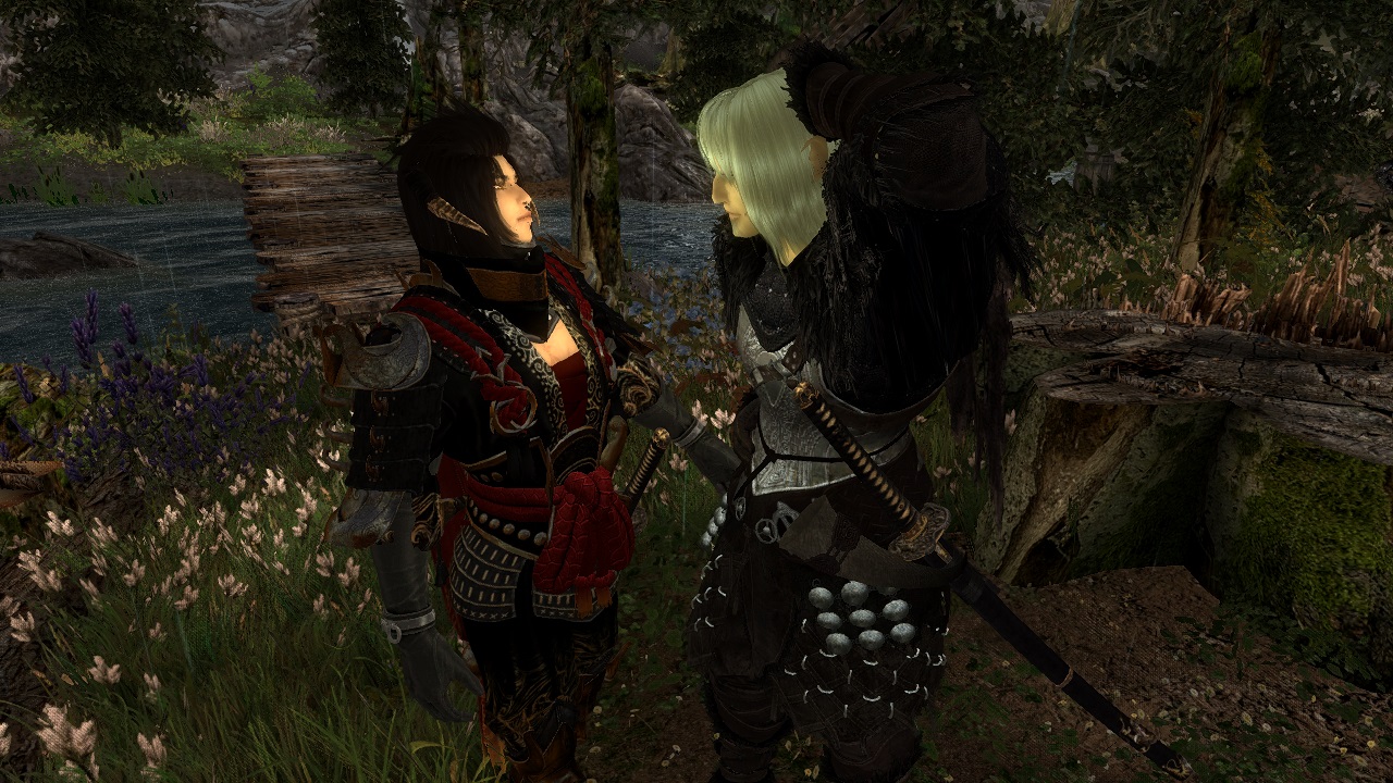 Дождь. Опять дождь. Скайрим мокрое и холодное место. Даже весной. Нужно быть человеком что бы любить воду , что льется ото всюду, противно скапливаясь под ногами. Хотя вполне возможно это спорное утверждение. Я зябко повел плечами, мокрые волосы прилипли к щекам и носу, забились за шиворот. Настырные капли заскользили по ушам и, подгоняемые шустрыми товарками, сорвались на меховой воротник. Мерзость. Уйти бы в теплый кабак, зарыться в толпу сонных от непогоды людишек и, натянув капюшон на лицо, сделать вид что сплю под шум стекающей с крыши воды. Это было бы правильно, благоразумно. Но.... У меня есть причина мокнуть на мосту. А вот и она. Точнее он. ![]() Шаги почти бесшумны. В принципе он умел подкрадываться совершенно незаметно. Но вокруг живут люди, он не прячется, а значит должен быть как все. Или почти как все. Некоторые странности люди спишут на то , что желтоглазый парень эльф, а не человек. А что с эльфов взять? Особенно с рогатых. Люди легко отвлекаются на детали, не различая за ними главного. Шаги за спиной сбились. Заметил. - Здравствуй. - Почти беззвучно произношу я. Поздороваться легко. Сложнее продолжить разговор. - Здравствуй. А я почти забыл что делает со мной его голос. - Как дела? - Нужно же хоть что-нибудь спросить. - Хорошо. Молчим. Я не могу заставить себя говорить. А он не хочет. Надо заканчивать это безобразие. Сейчас возьму себя в руки и спрошу. Потому что он никогда не заговорит первым. Я ошибся. Опять. - Ты решил проверить не убиваю ли я снова, Като? - Он раздражен. - Я... - Конечно убиваю. - Желтые глаза сверкнули из под густых ресниц. - Но не так как в Виндхельме. - Значит нашел способ держать себя в узде? - Я идиот. И это не лечится. - Он всегда был. - Ему скучно. Заставляю себя повернуться. Рука в черной коже туго перетянутая ремнем протянута в мою сторону. - Боль, еще раз боль и на последок много боли. - Мастер Направляющий... - Угадываю я. Гнев заливает разум, заставляя кровь биться где-то в затылке. ![]() Он усмехается. Ненавижу. Его, себя, всех. - Тебе лучше уйти, Като. - Грустно говорит он. - Не хочу. - Знаю, звучит по детски. Но , Малог всех задери, я совершенно не контролирую себя рядом с ним. - Скоро выйдет солнце... - ПЕРЕЖИВУ! - Рявкаю я. И все порчу. - Не сомневаюсь. - Равнодушный голос и грустные желтые глаза. ![]() Меня понесло: - Ты никогда ни в чем не сомневаешься! Все знаешь на перед! Решаешь за нас обоих !!! - Не ори, Като. - Почти шепчет. Разозлился. - Хочу и ору! - Ни разу за весь наш разговор не назвал меня "Мой Повелитель"....Ни одного паршивого раза! - Кто ты такой, что бы меня затыкать?!!!! - Тебе пора. - Он развернулся. Я быстро оббежал его, перегородив дорогу. - Ну уж нет. Таскаться за тобой еще тридцать лет я не намерен. Поговорим сейчас. Сверлим друг друга глазами. Мне тяжело выдерживать этот взгляд. Он очень изменился. ![]() - Ладно... - Он пошел к берегу быстрой речушки. Я как собака, что обрела наконец хозяина, плетусь за ним. - Говори. - Понимаешь... - Я мнусь с ноги на ногу. Эти глаза - моя погибель. - Нет. - Я...Это...Хотел... - Тебе отдаться? - Так просто? - Я растерялся. - Все равно этим закончится, Като. - Он сплюнул в густую траву. - К чему огород городить? - Огород? - Это что новая людская забава? Заниматься любовью с граблями в руках? Нет, я знал, что люди странные... Одни мечи со щитами в изголовье кровати, которые Лидия любовно прилаживала на стену каждый вечер, чего стоили. Весь процесс во