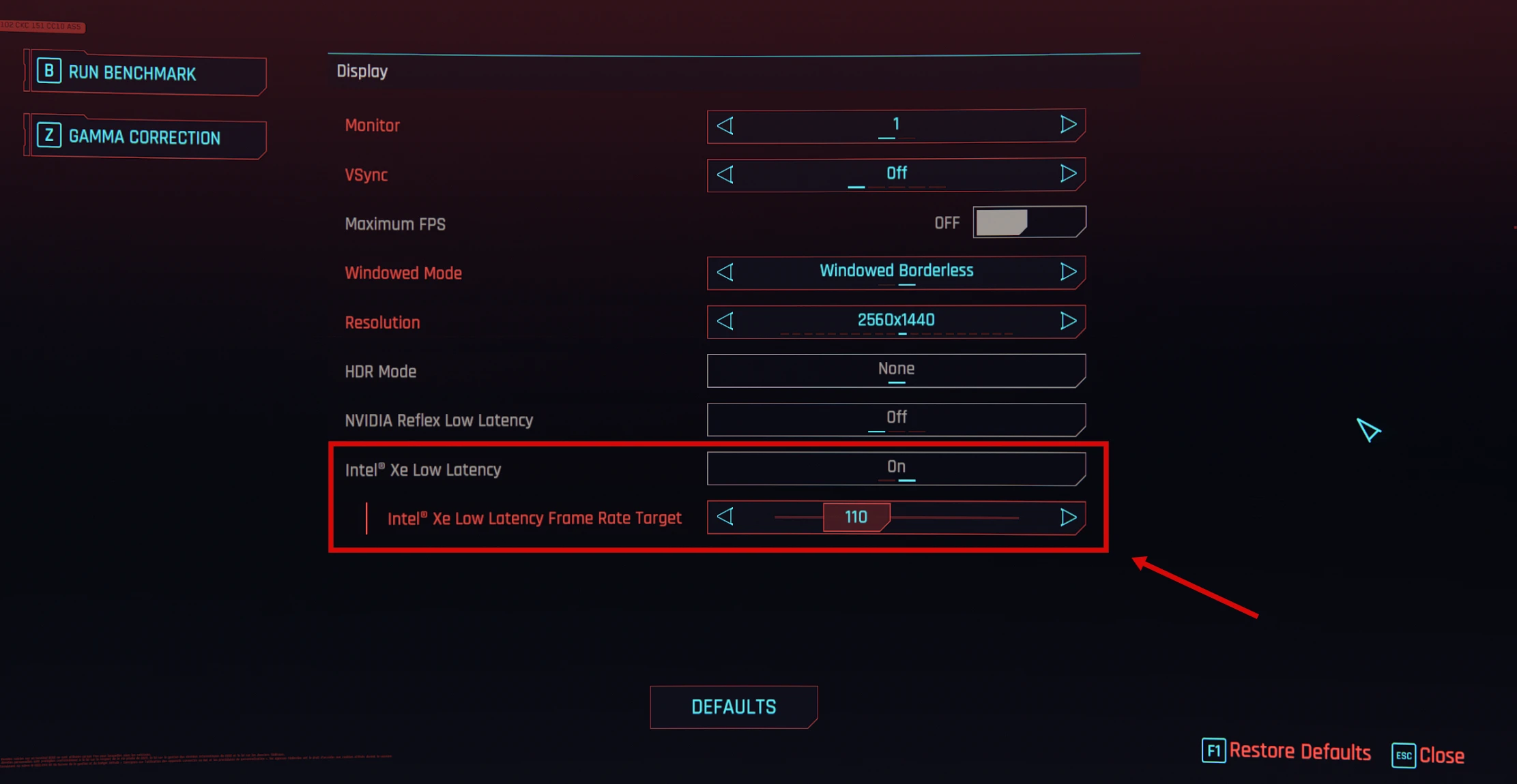 Xe Low Latency уменьшает задержку ввода, как и NVIDIA Reflex. Это делает игру более отзывчивой, особенно при использовании XeSS. Настройка частоты кадров в этой опции не является ограничением — это цель, используемая технологией для повышения отзывчивости. По сути, вы указываете ей «стремиться к 120 кадрам в секунду», и она динамически регулирует обработку изображения, чтобы игра оставалась отзывчивой, даже если частота кадров иногда падает до 80.