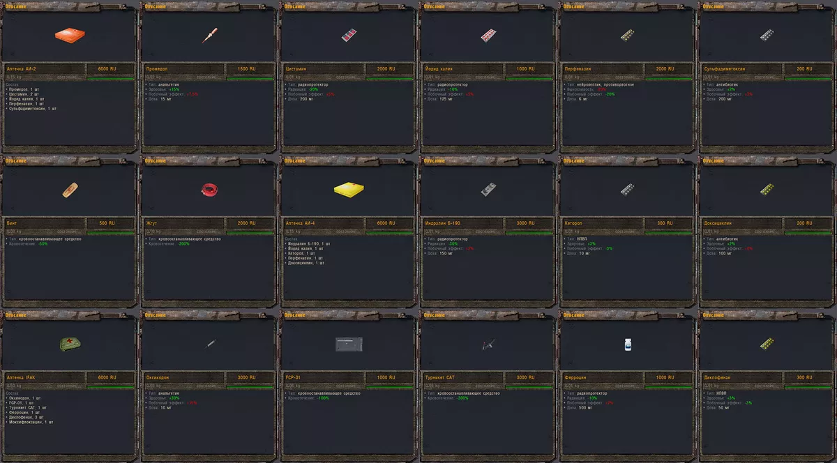 - Количество медикаментов увеличено до более 30-ти единиц (анальгетики, антирадиационные препараты, стимуляторы, кровоостанавливающие средства)