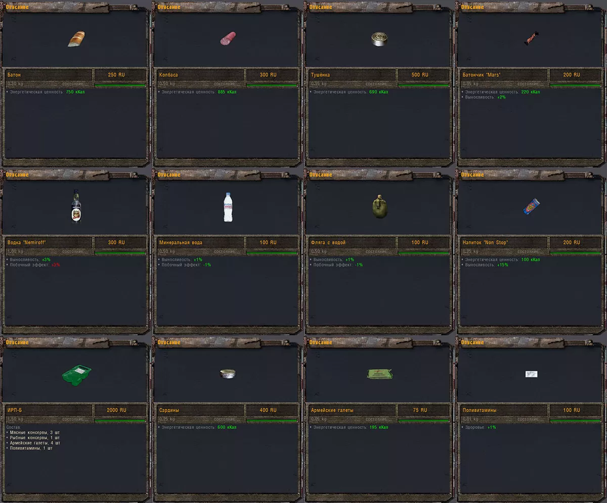 - Исправлен нереалистичный вес MRE (0,35 кг вместо 0,8 кг)