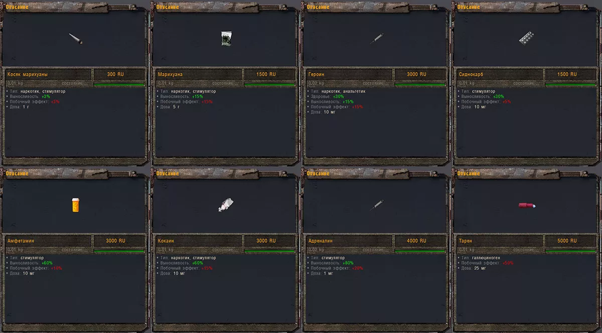 - Более реалистичные характеристики героина (восстановление выносливости увеличено на 33%, добавлено уменьшение насыщения)