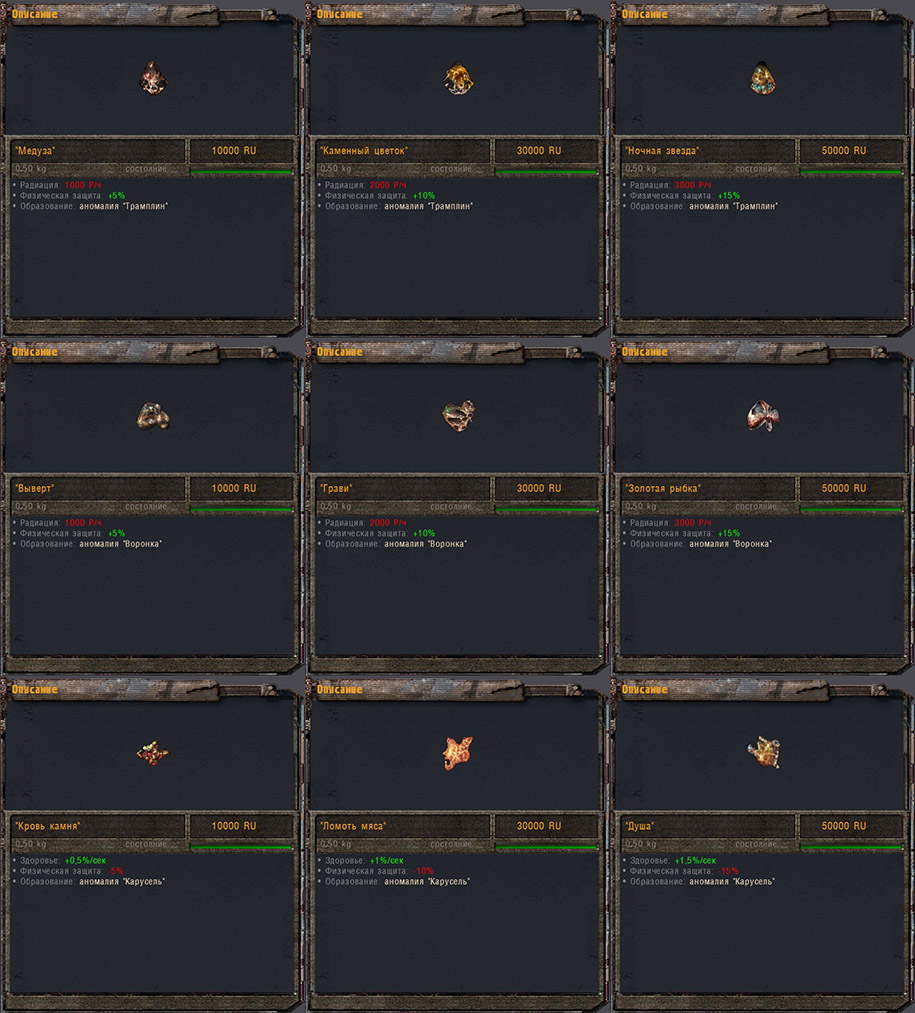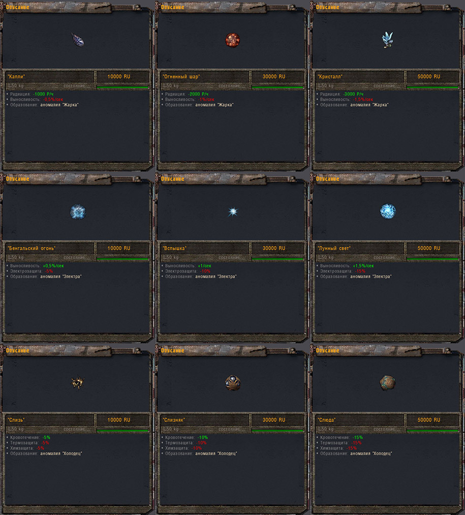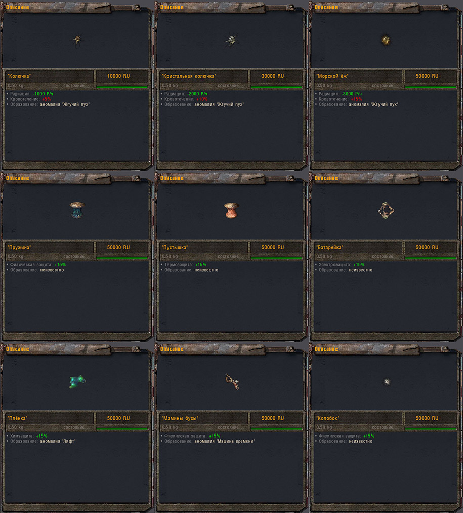 - Уменьшение облучения артефактами "Колючка", "Кристальная колючка", "Морской ёж", "Капли", "Огненный шар" и "Кристалл" увеличено в 2 раза