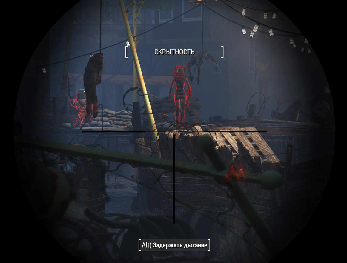 При взятии в руки оружия, шлем автоматически закрывается и включается "Прицельный интерфейс" (подсветка целей).