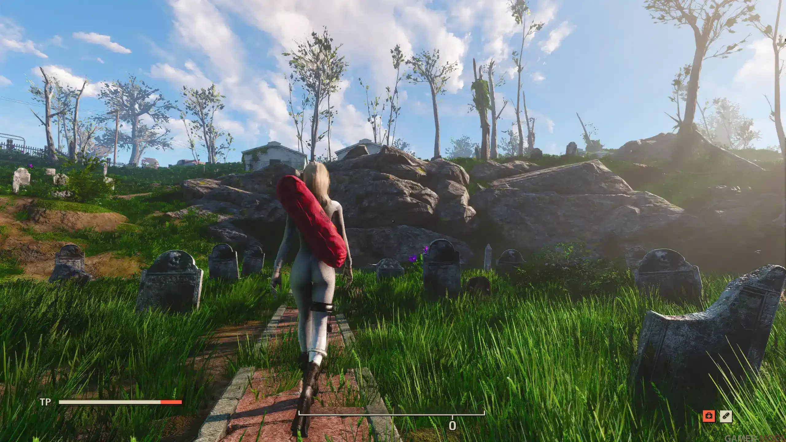 - а) Используйте аддон Worn Duffle Bags для ношения как рюкзаков (скачивается отдельно на Nexus, но по умолчанию включен в архив на Gamer-Mods.ru);