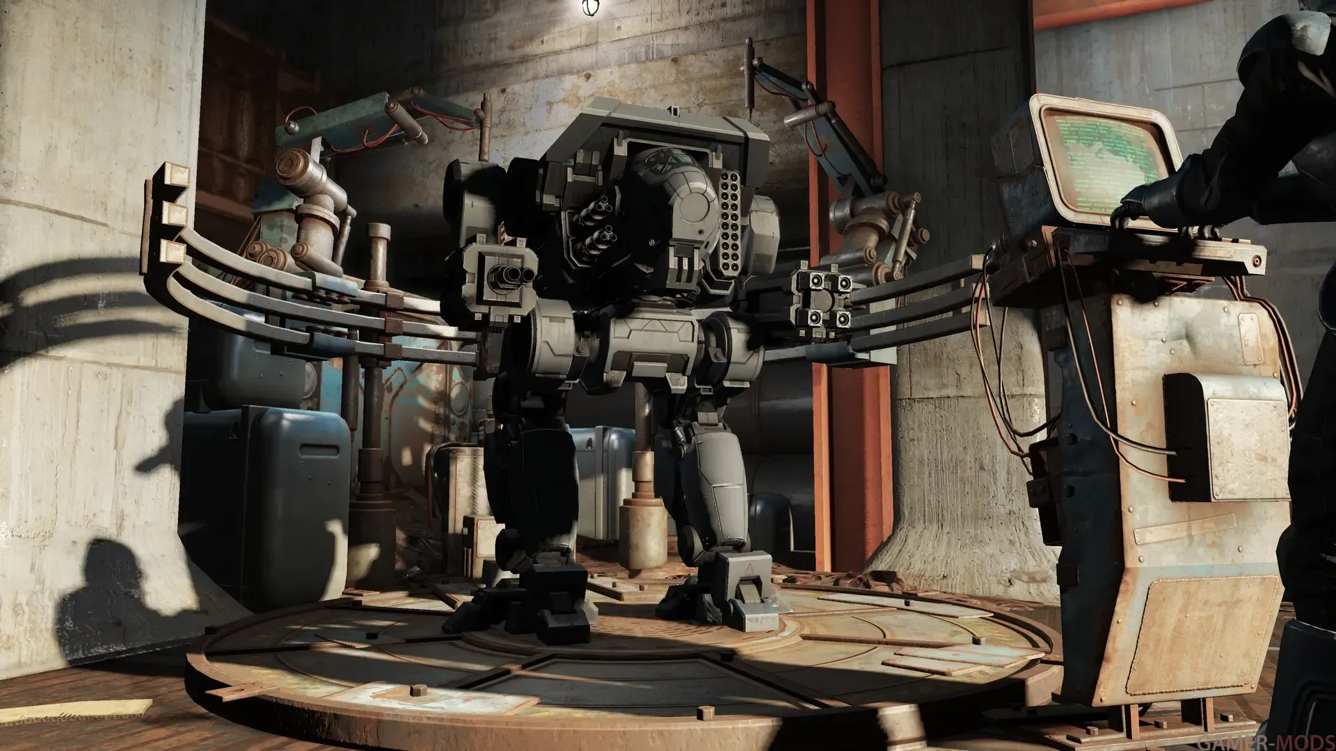 Он может быть оснащен четырьмя руками одновременно и обладает мощной огневой мощью и прочной броней.