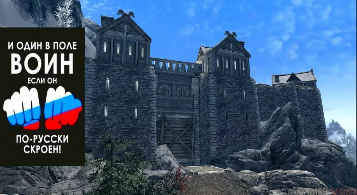 Перевод текста на РУССКИЙ мода White Hearth. Заснеженный, укреплённый дом игрока на скалистом выступе между Ривервудом и Вайтраном.