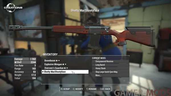 • Типы боеприпасов: Выбирайте между пулей или картечью. У пуль инвертированное расширение прицела при стрельбе от бедра в зависимости от длины ствола.