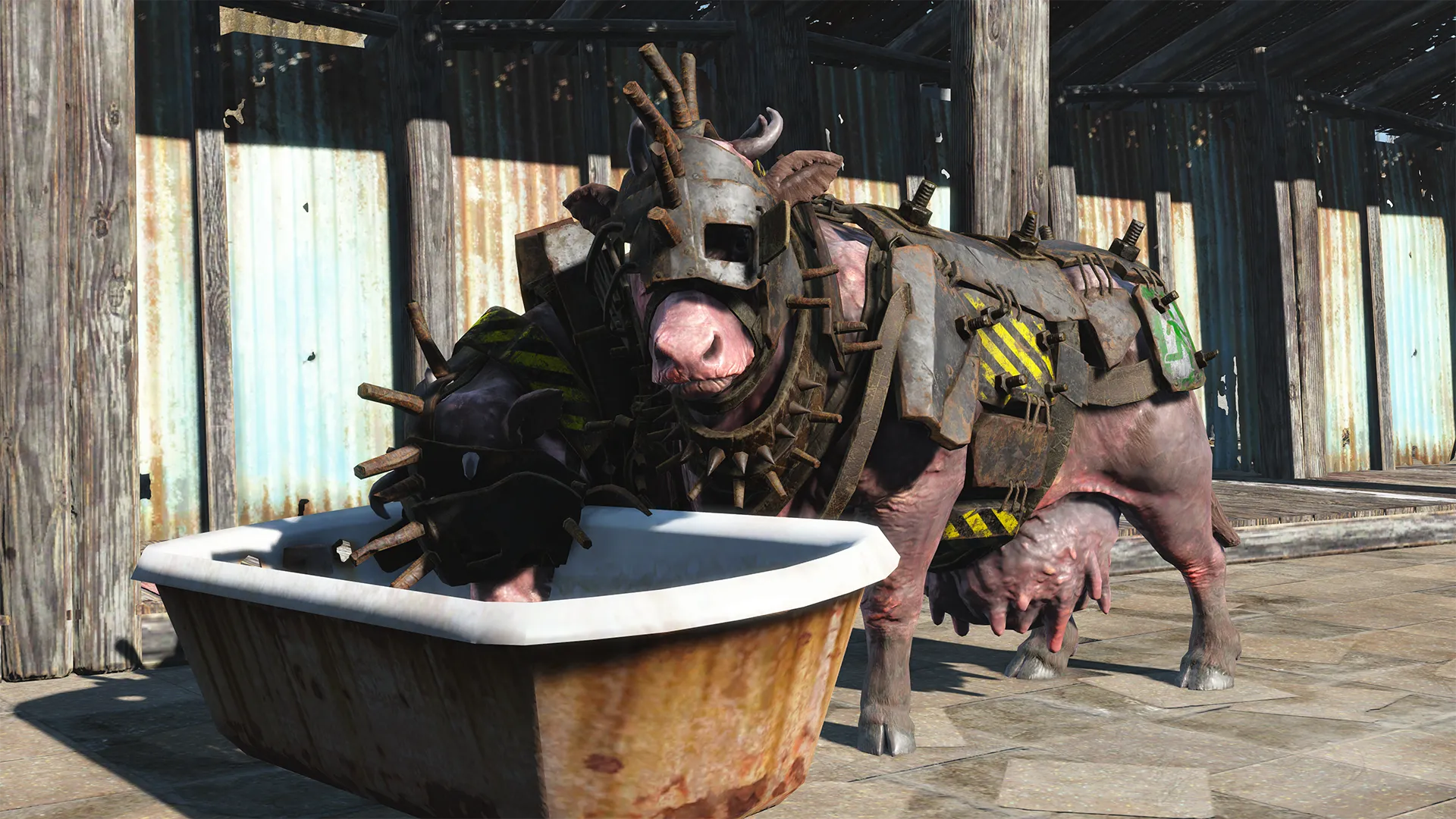 Заведите себе собственного могучего двуглавого стража, который поможет охранять ваше поселение и укрепит его оборону! Выберите одно из более чем ста уникальных имен, чтобы придать вашему бычьему громиле индивидуальный характер. (Задание «Выменивое безумие» можно найти, исследуя ипподром в Кайф-сити.)