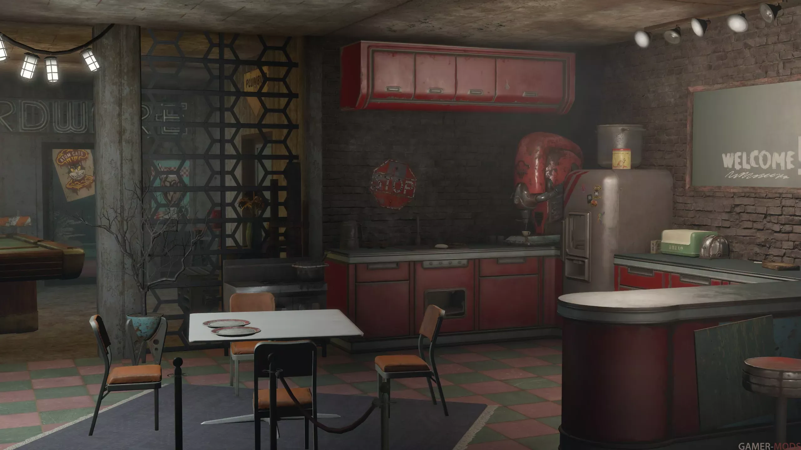 Новый уютный игрок в стиле Атомных Котов в Лексингтоне. Дом полностью меблирован, но в нем также есть внутренняя мастерская, если вы хотите добавить декор или даже отказаться от всего и начать всё сначала!