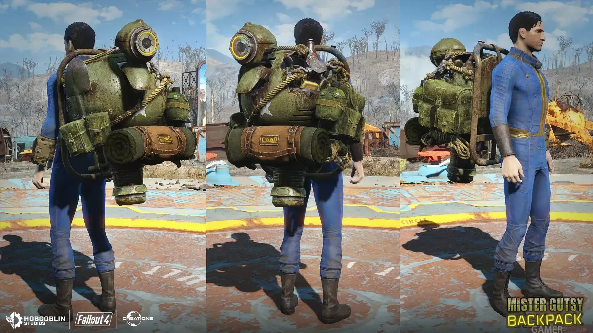 Возвращение оригинального актёра озвучки Мистера Храбреца! Этот уникальный рюкзак Мистера Храбреца идеально подходит для любого путешествия по пустошам, особенно если оно включает в себя множество убийств и исследований.