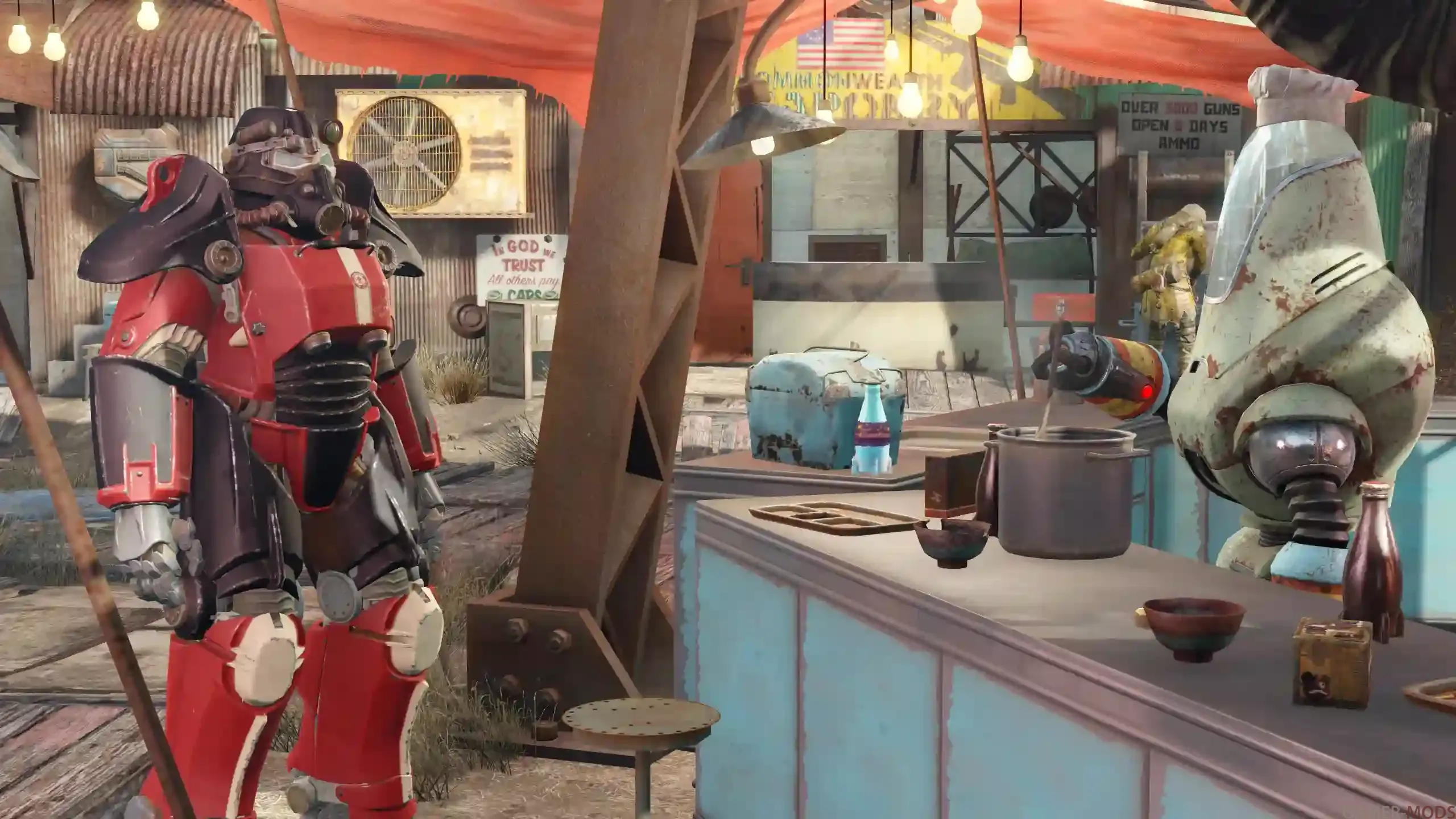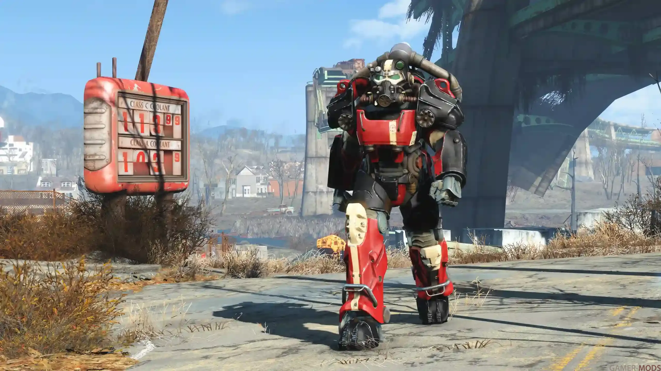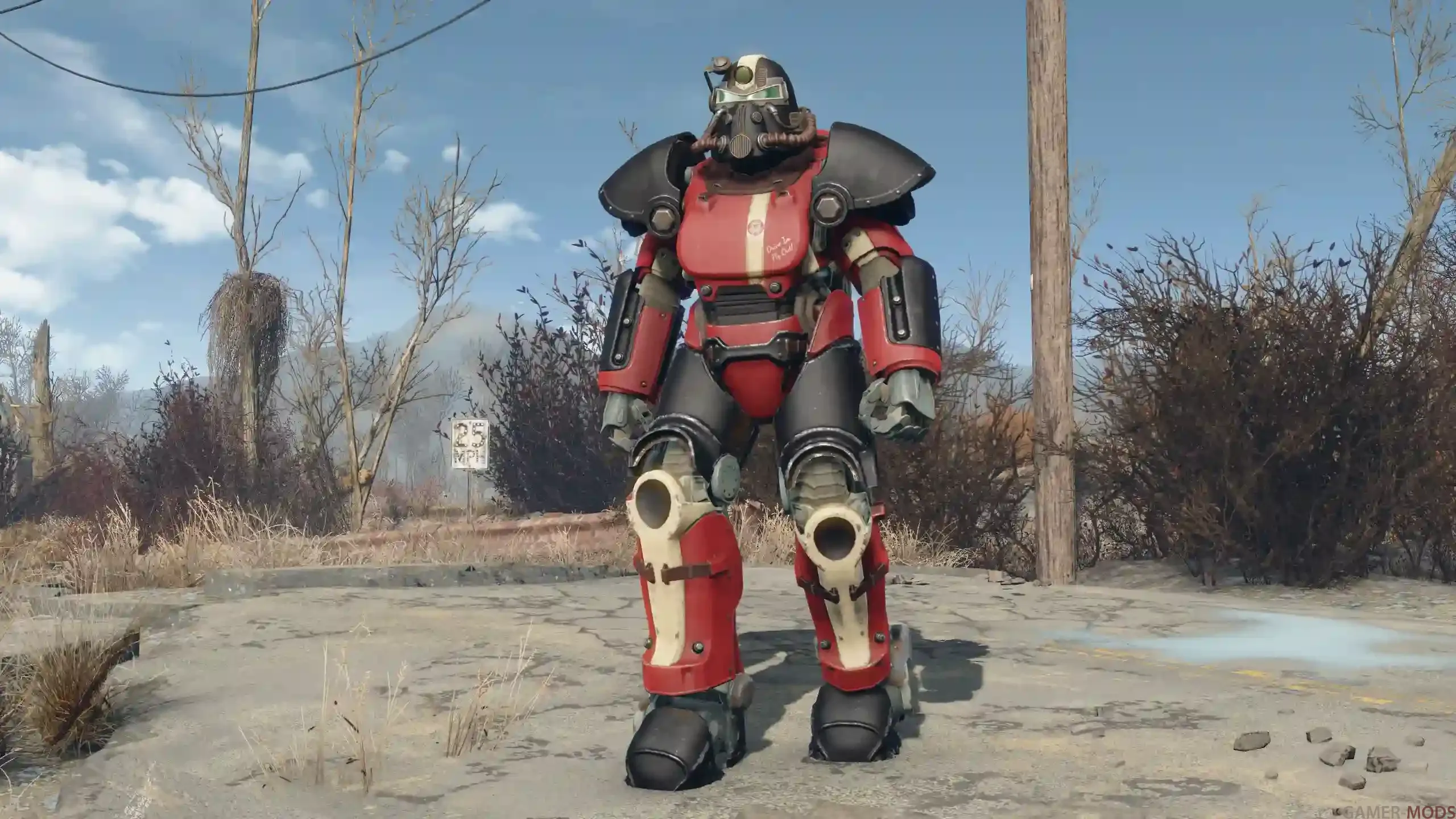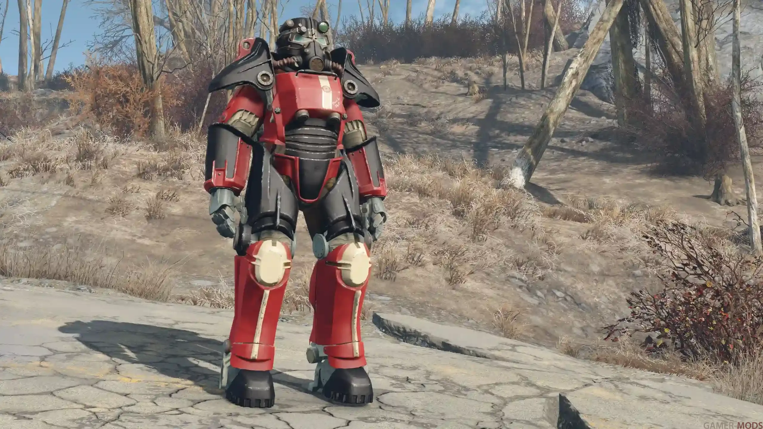 - Четыре окраски в стиле Красная ракета — по одноой для каждого ванильного типа брони: T-45, T-51b, T-60 и X-01.