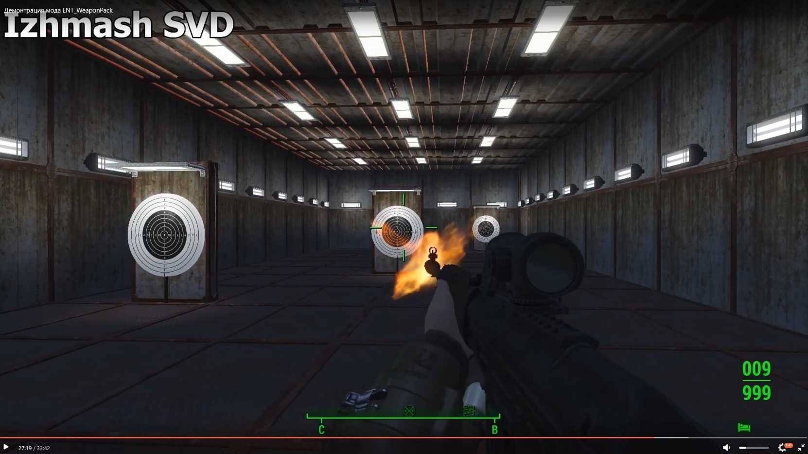 Видео демонстрации - без модов ствола, там есть стволы длинные а эффект как из стандартного (по этому и из центра стреляет).