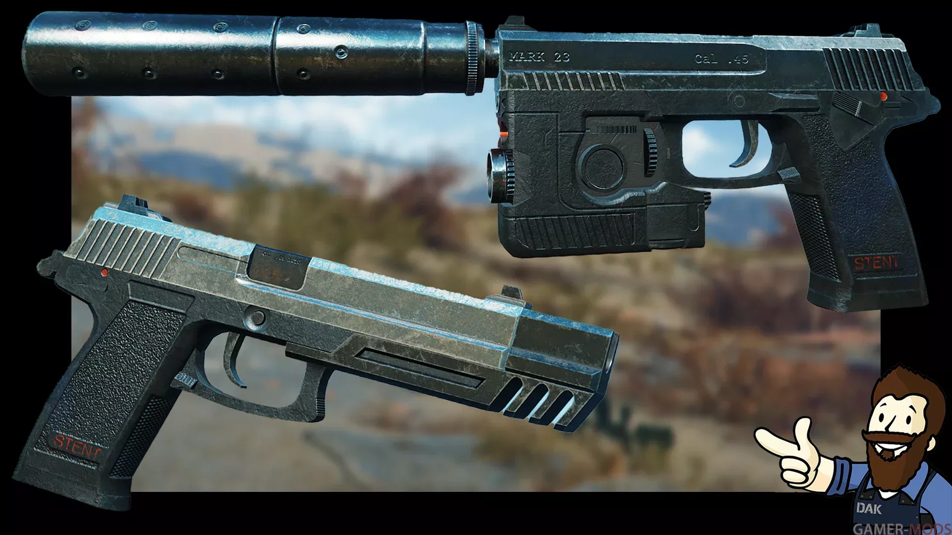 Мод добавляет в Fallout 4 два полностью новых оружия, созданных с нуля: мощный пистолет калибра .45 на основе легендарного MK23 SOCOM и усиленную боевую монтировку. Оба предмета выполнены в фирменном постапокалиптическом стиле - с уникальными моделями, текстурами и детализацией, органично вписывающимися в мир Пустошей.