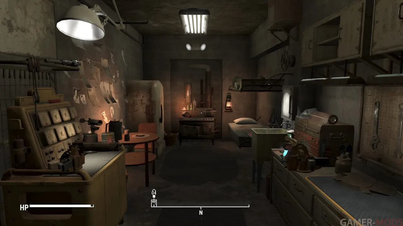 Другие особенности включают в себя: дом игрока на нижнем уровне с кроватью, автоматическое поле для дезактивации, несколько уникальных станций крафта (тележка в гараже - это оружейная лавка, раковина - химическая, шкаф - для хранения брони), бесконечную бутылку Квантовой ядер-колы для пополнения вашего здоровья, и много места для хранения вещей.