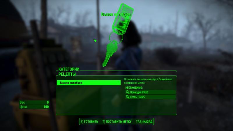 Если вы находитесь на улице, вы также можете вызвать автобус на ближайшую разблокированную автобусную остановку с помощью пульта Вызова автобуса. Создайте пульт Вызов автобуса можно на Автобусном верстаке в разделе Утилиты и используйте его из своего инвентаря, он будет находиться в разделе Помощь.