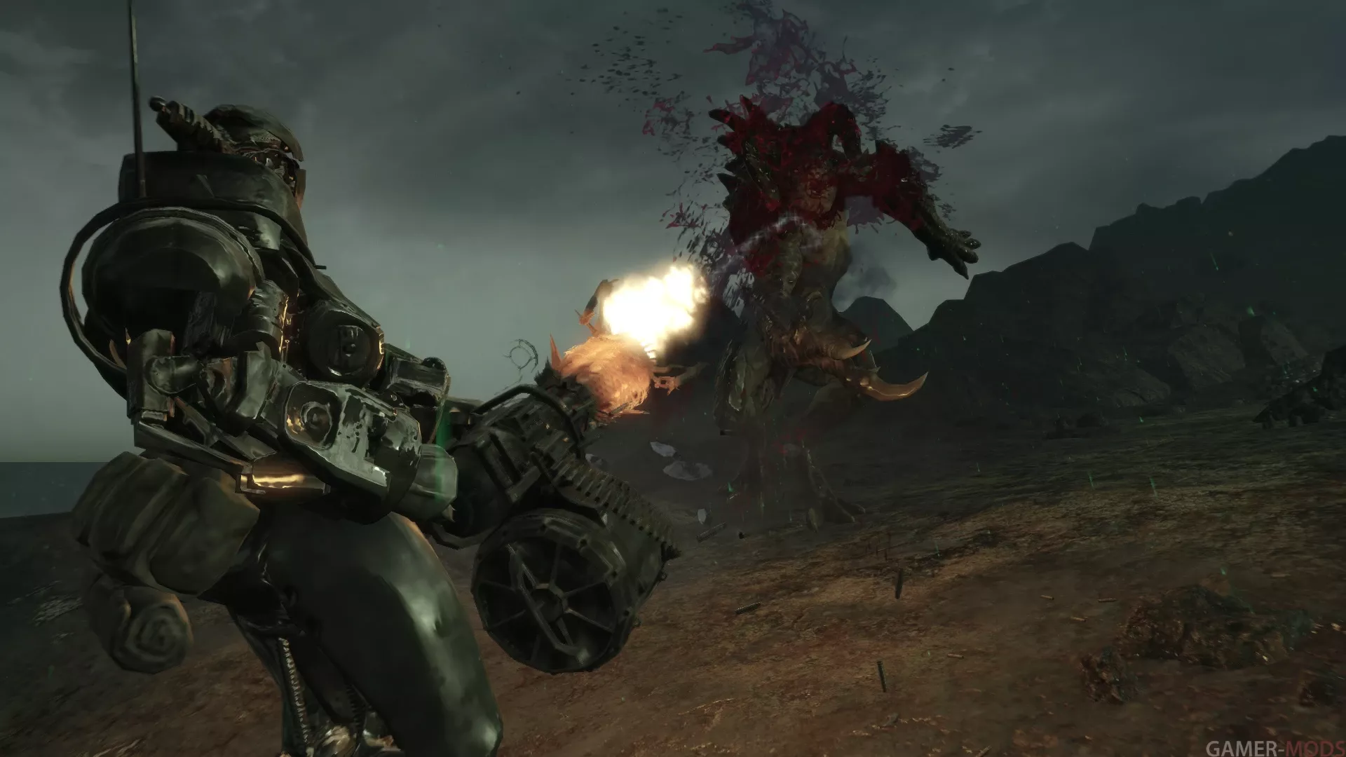 5: Повелитель Битвы: самый большой и самый страшный робот, с которым вы можете столкнуться в Содружестве. Двойные лазеры, ракетная установка и разрушительная установка дронов-охотников делают его силой, с которой нужно считаться. Мой совет — продолжайте двигаться и остерегайтесь дронов, которые будут безжалостно преследовать вас. В пустошах можно найти только трех Повелителей Битвы - одного в Куинси, одного за пределами Здания Стрелков а и одного в Светящемся море.
