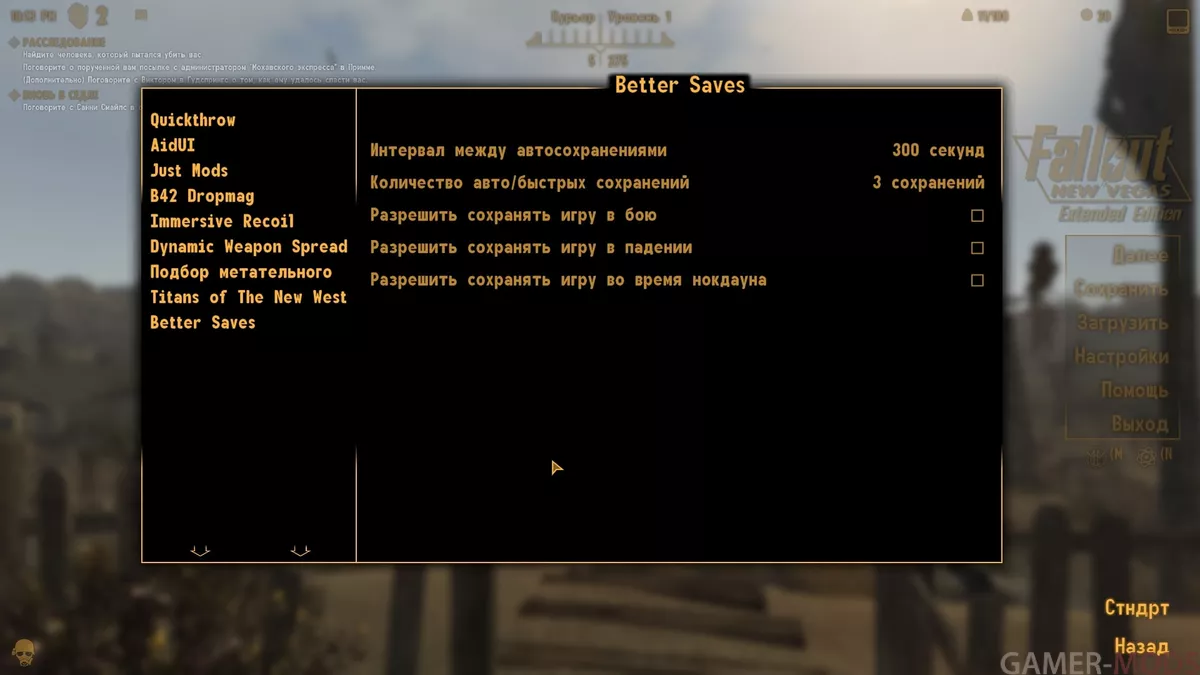 - 3 слота на авто- и быстрые сохранения (кастомизируется)