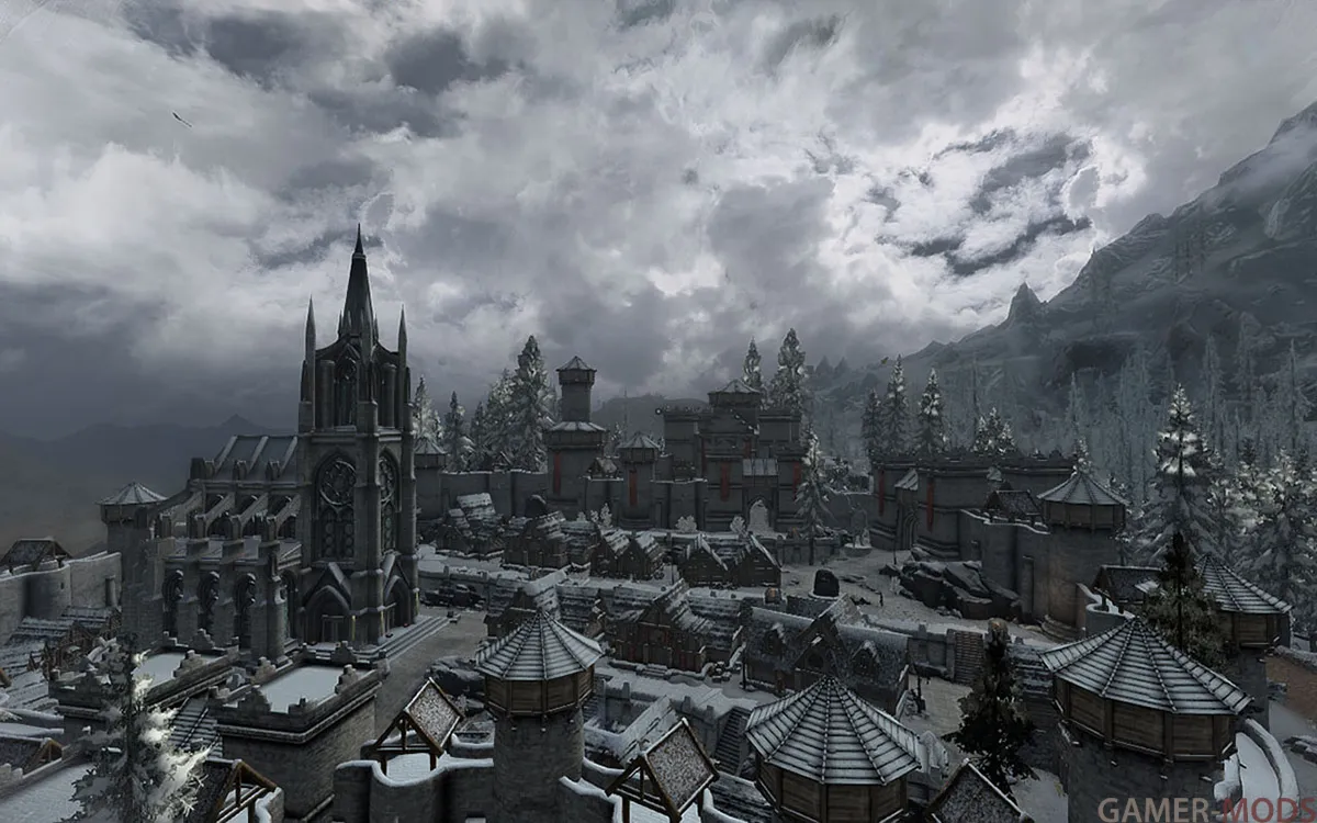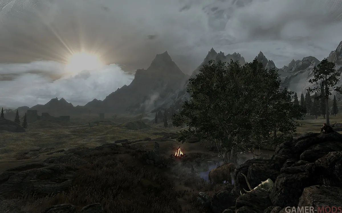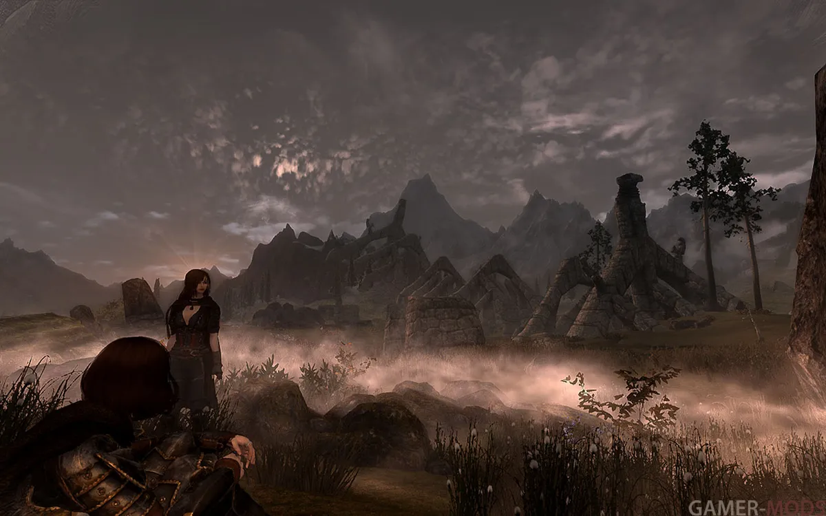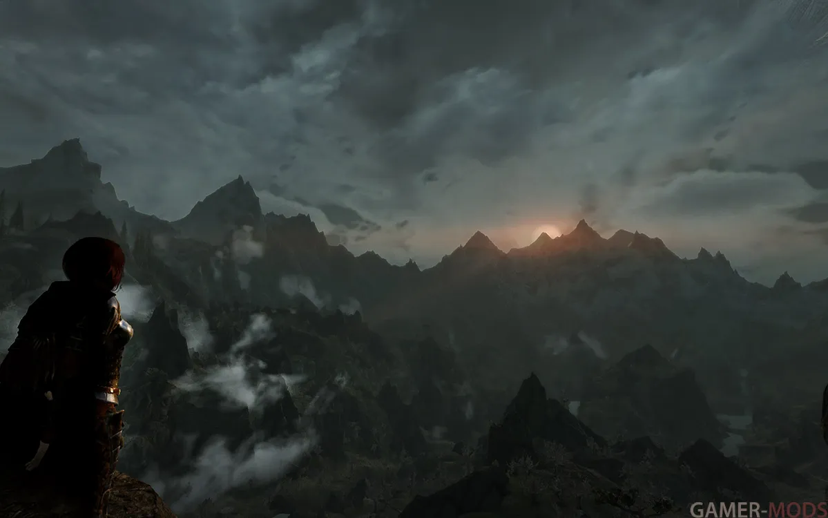 В сборке холодно, туманно, метели, дожди, грозы - Это Скайрим... Примерное время прохождения процентов на 80% - от 200 до 500 часов, при вдумчивой игре.