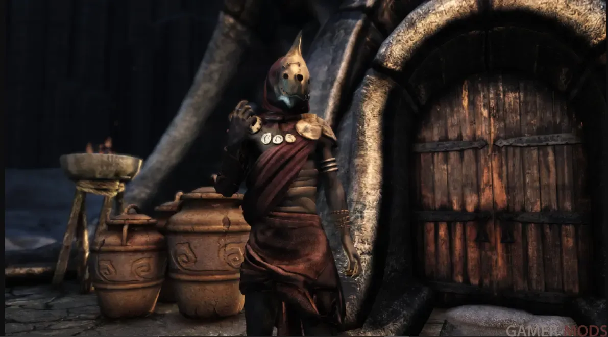 Одеяния провидца Эшлендера: четыре варианта шлема, носит новый NPC, проживающий около силт страйдера недалеко от Тель-Митрина, требует навыка Эльфийской кузницы