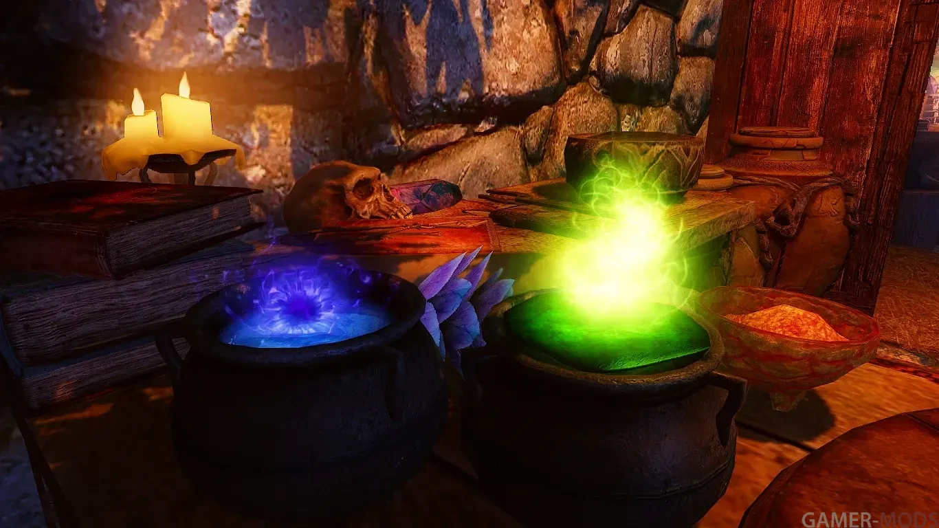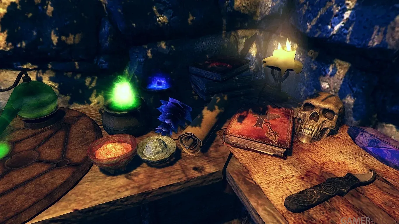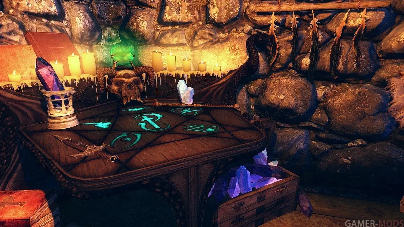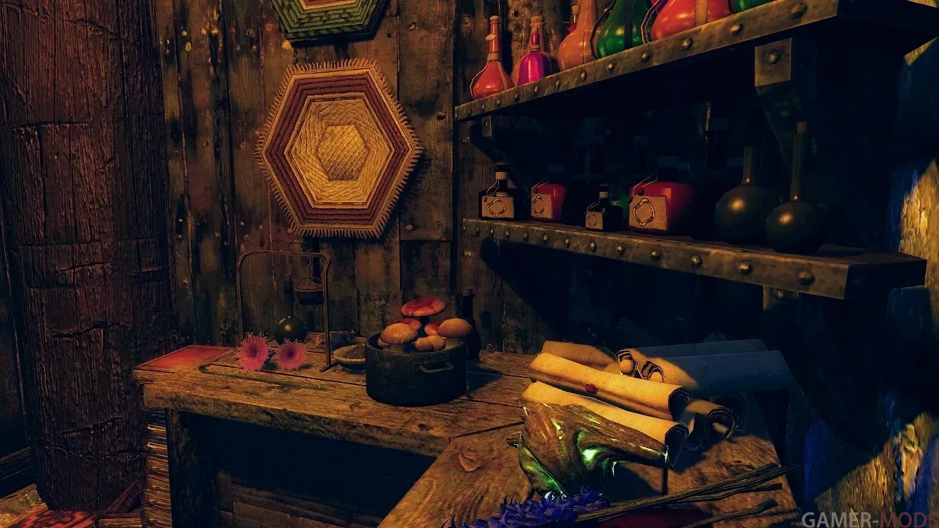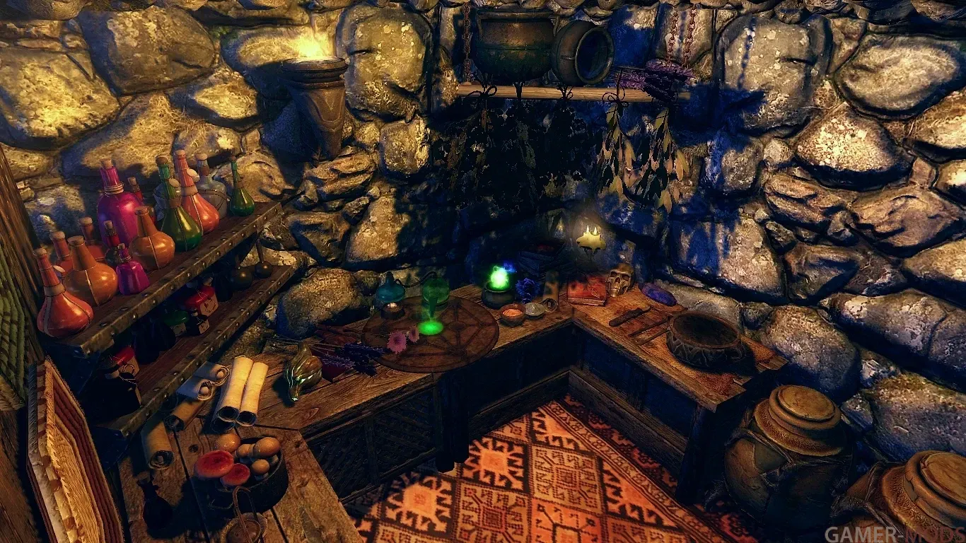 - одна кровать; - алхимический верстак, верстак для зачарования и кузница в подвале;