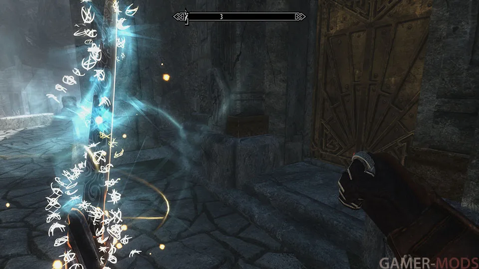 Всемогущий Удар - мощный заряд магической энергии, наносящий 400 урона здоровью, Магии и Выносливости. (3 Волшебных Рунных камня для одного зачарования.)