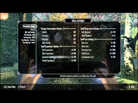 Заклинания потребляют магию, выносливость и здоровье, плоть до самой смерти, так что будьте осторожней. Потребление можно настроить в МСМ меню, в этой версии возможность отключить потребление здоровья деактивировано из-за багов, вызываемых этой функцией.
