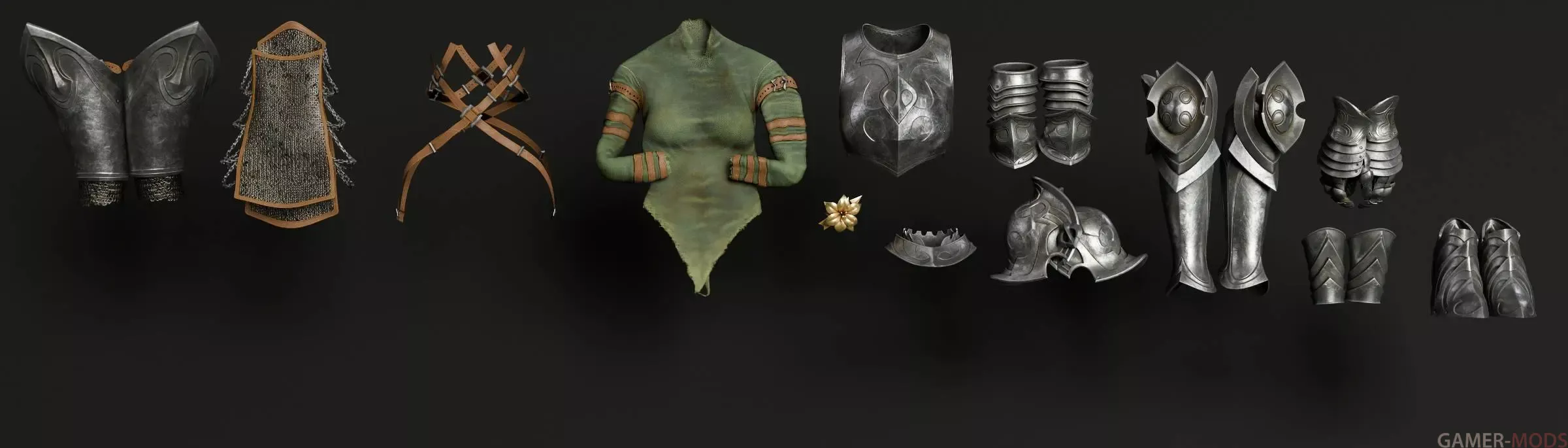 Показатели защиты близки к орочьим доспехам. Физика тела есть там, где это логически обоснованно. Флаг ESL. 2k текстуры по умолчанию.