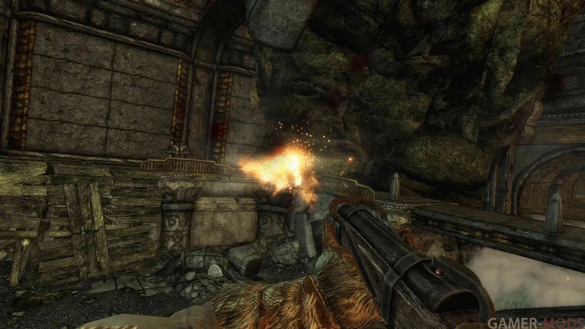 Уникальное вооружение: Овладейте аркебузами различных типов (двемерские, эбеновые, уникальные версии), которые игнорируют 50% брони и обладают шансом ошеломить противника.