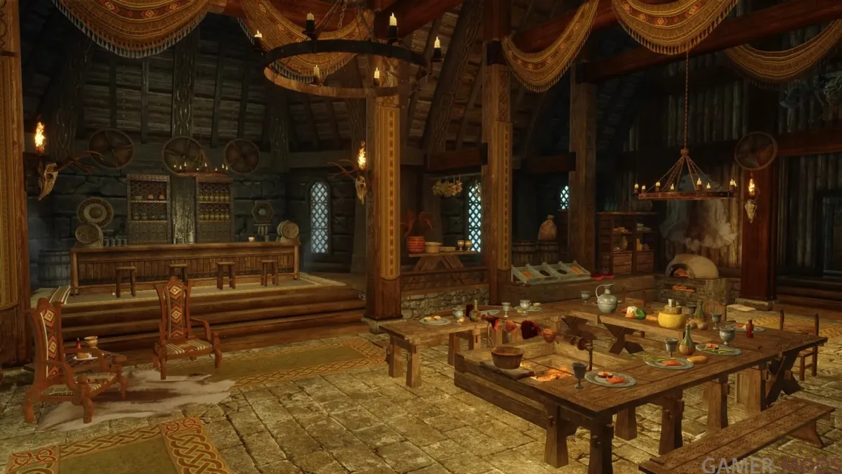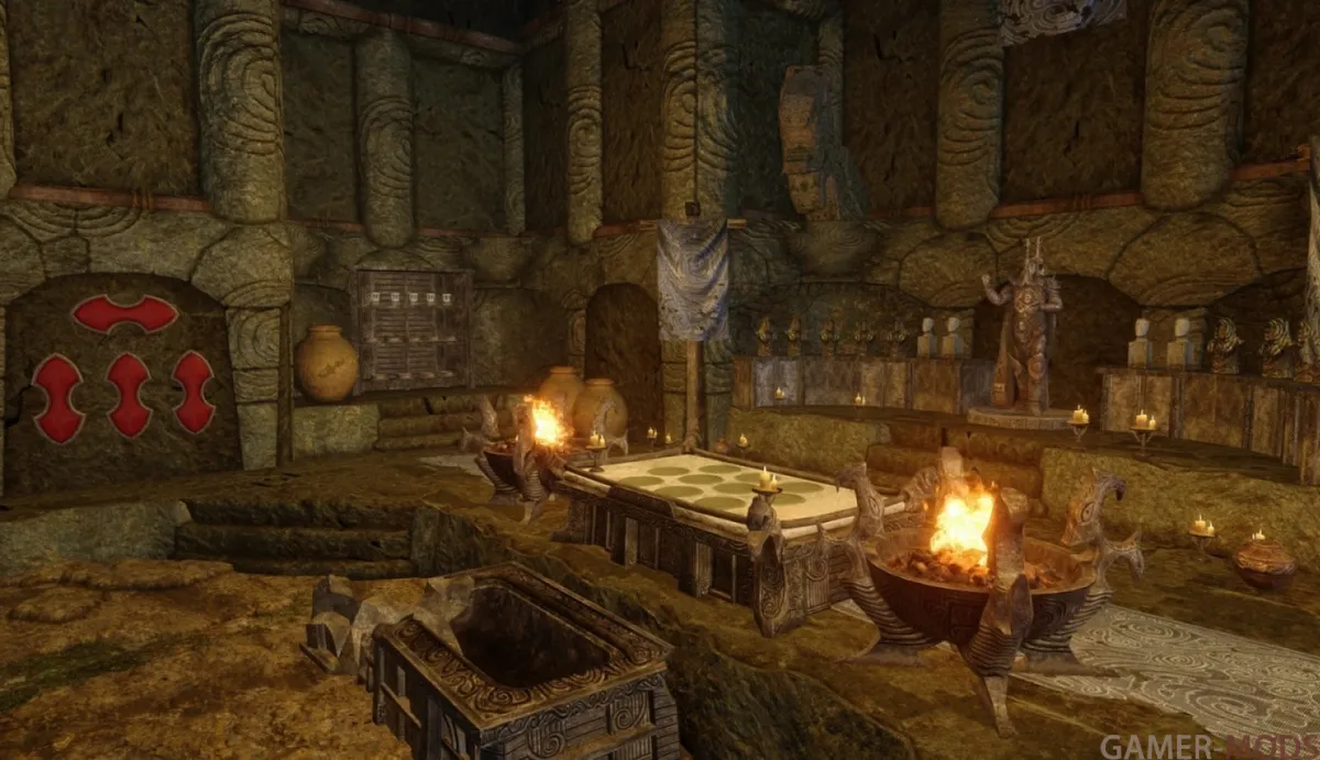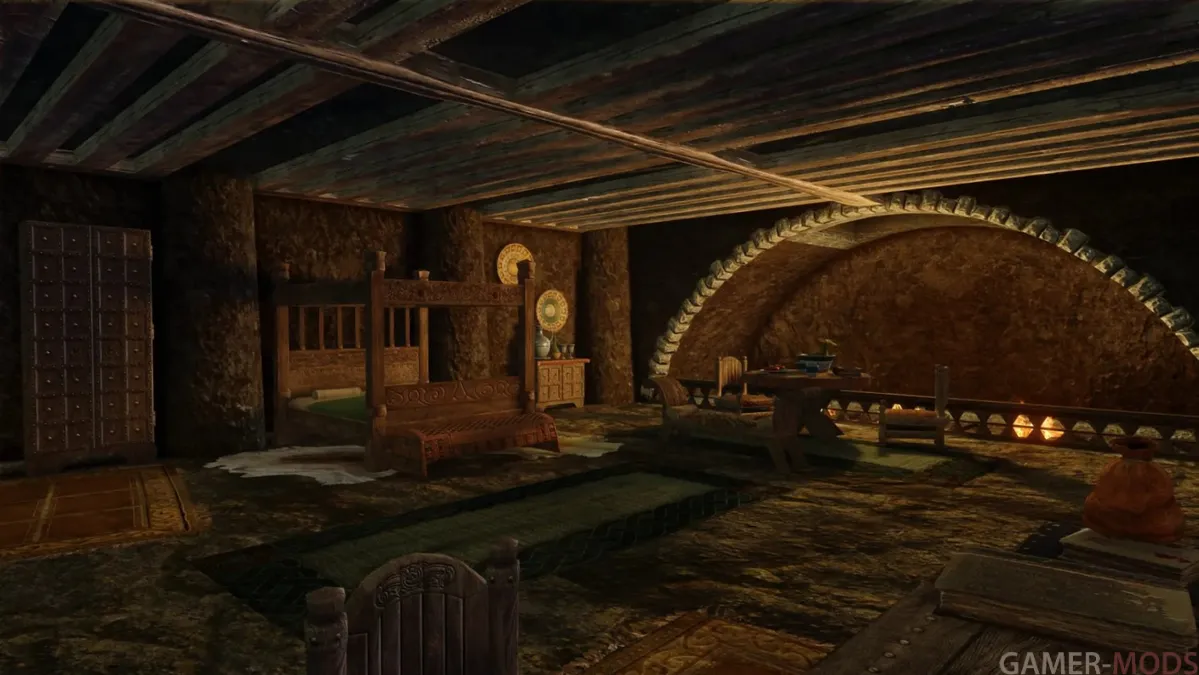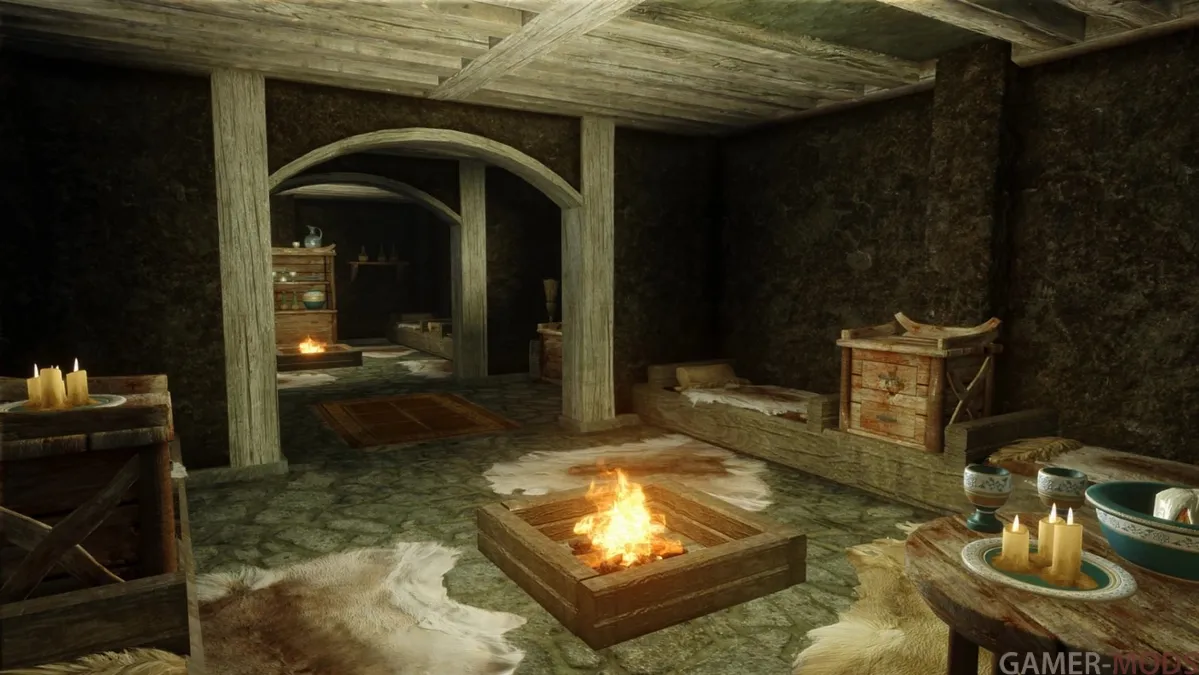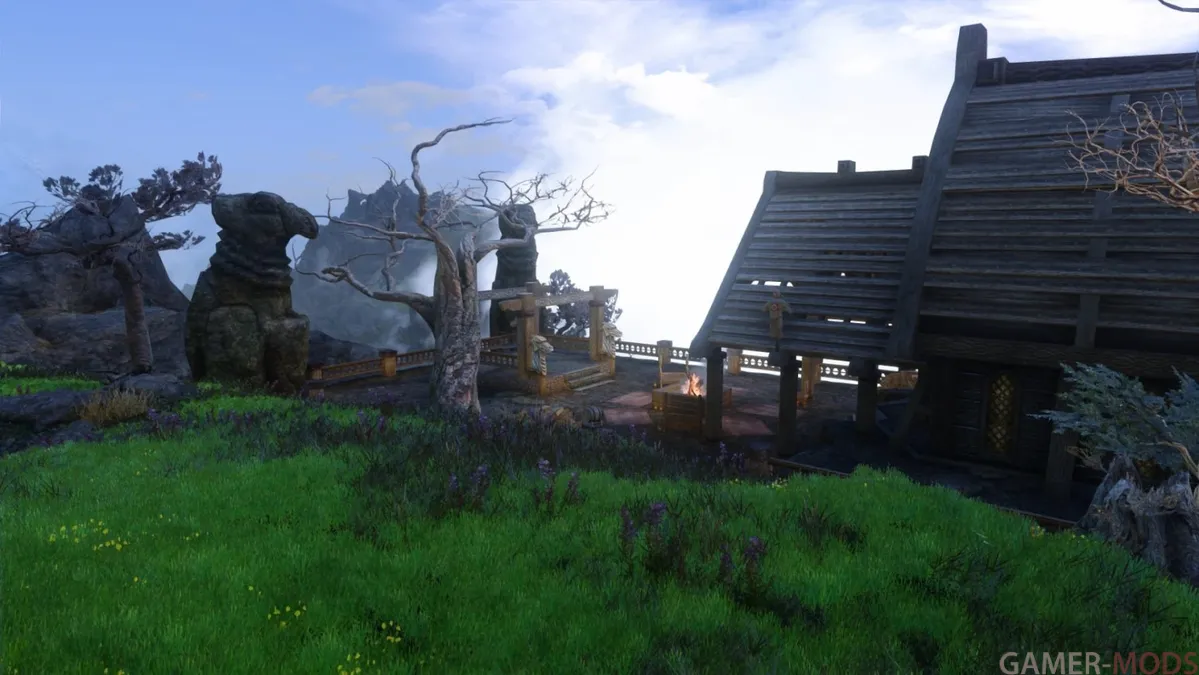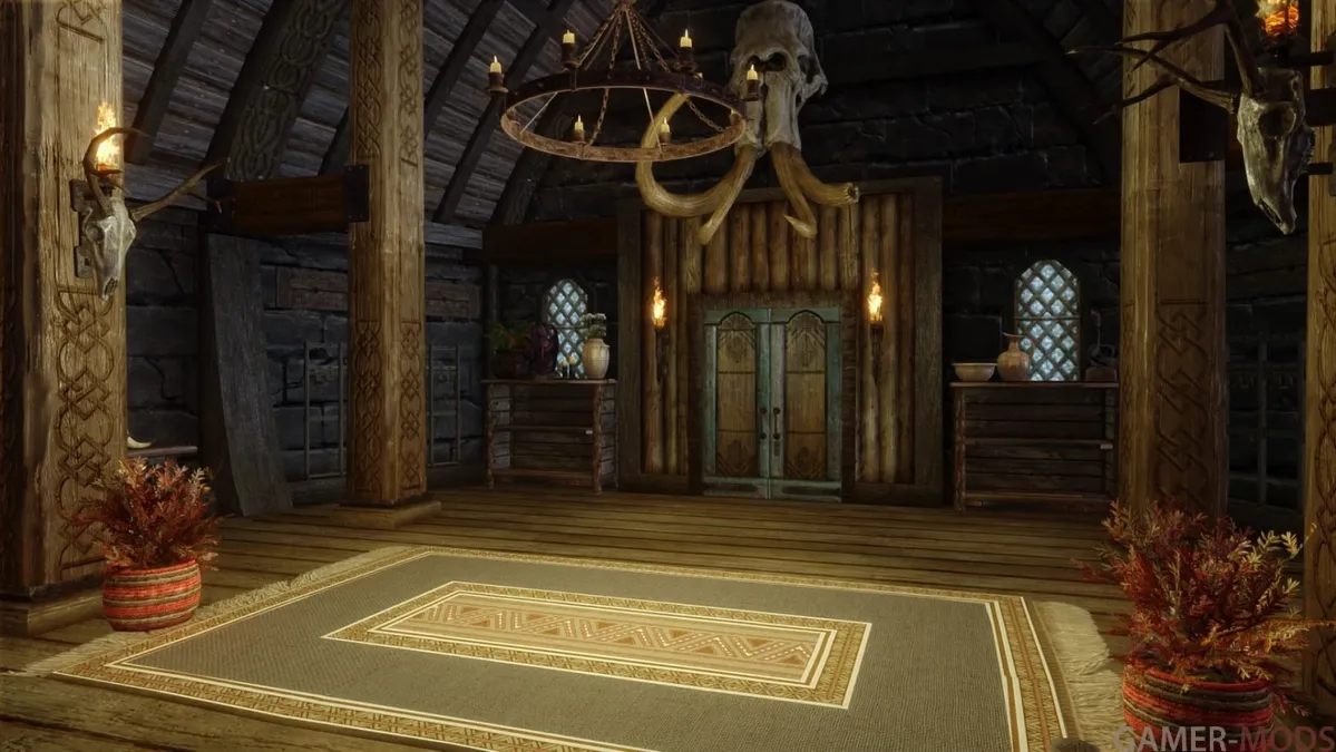 Это переработанная версия дома игрока в Хендрахайме. Мне всегда нравилась скандинавская атмосфера этого мода, но я чувствовал, что чего-то не хватает. Я хотел усилить скандинавскую атмосферу, добавив архитектуру старинных руин.