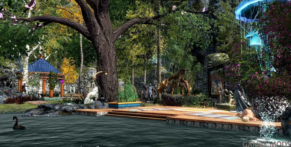 На Острове и в Поместье пока ничего не ставил своего. Потому что это пока новые локации. Хотя на Острове уже плавают лебеди и бегает Гремлин. У вас этого нет.