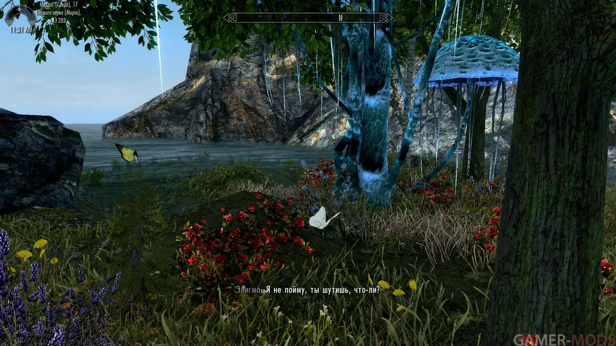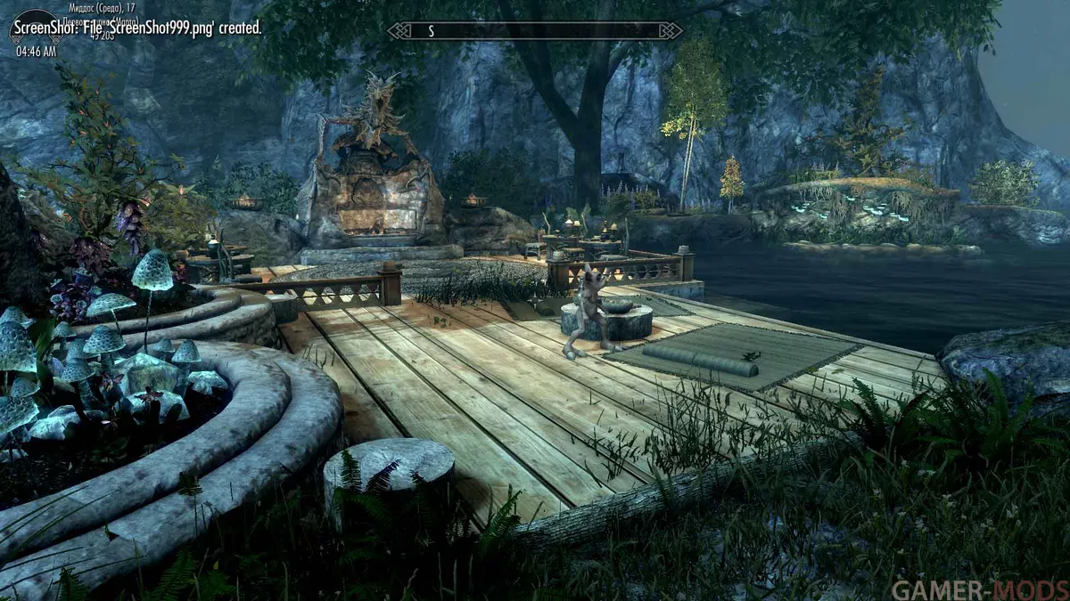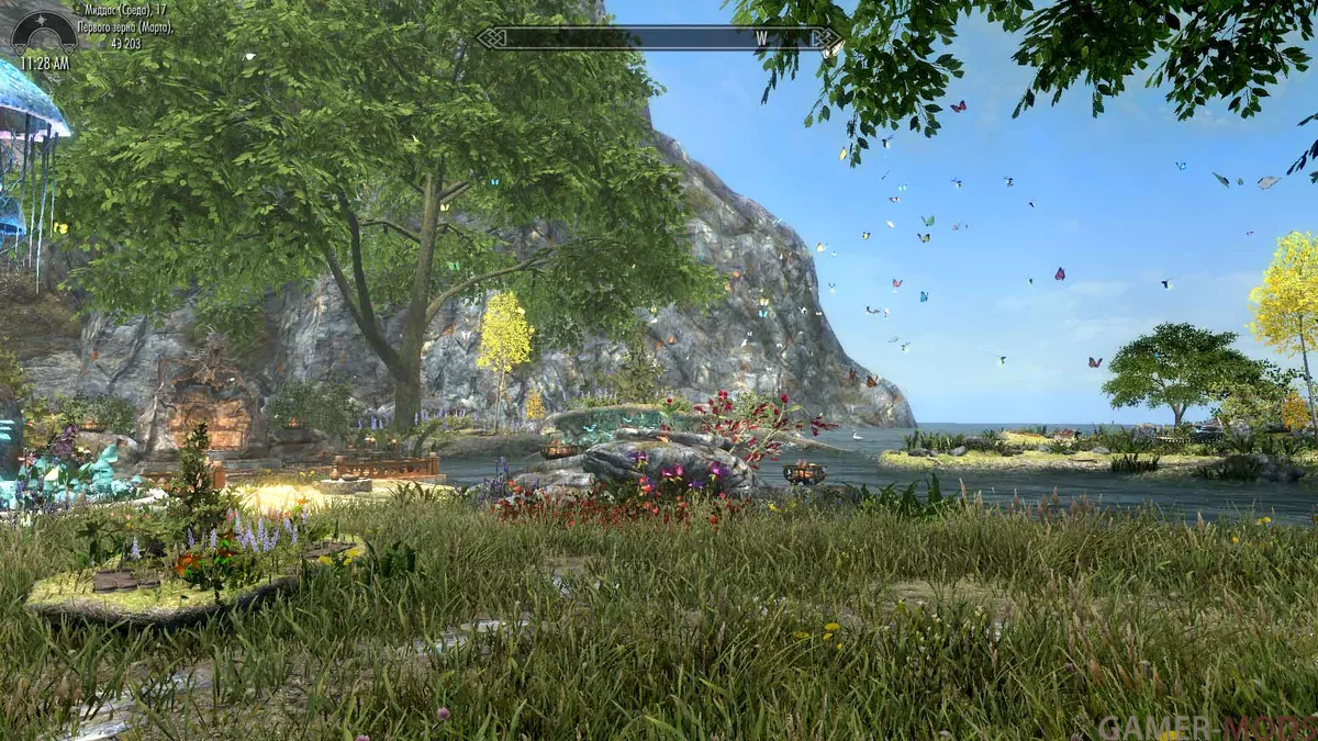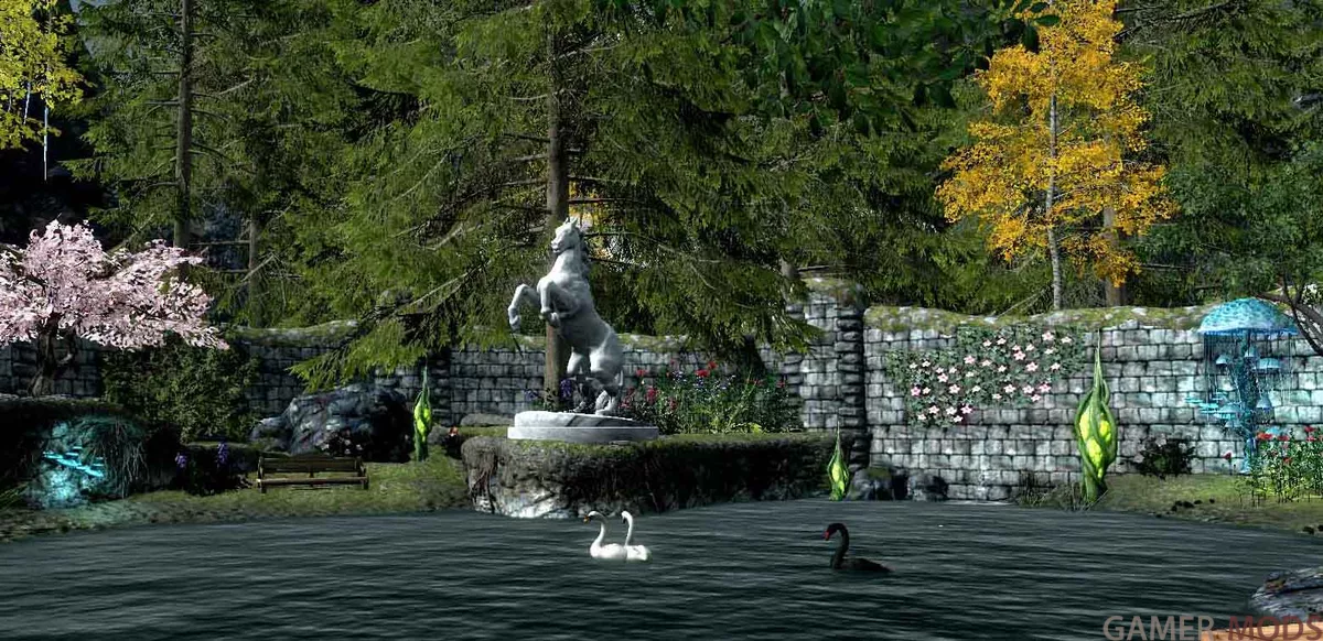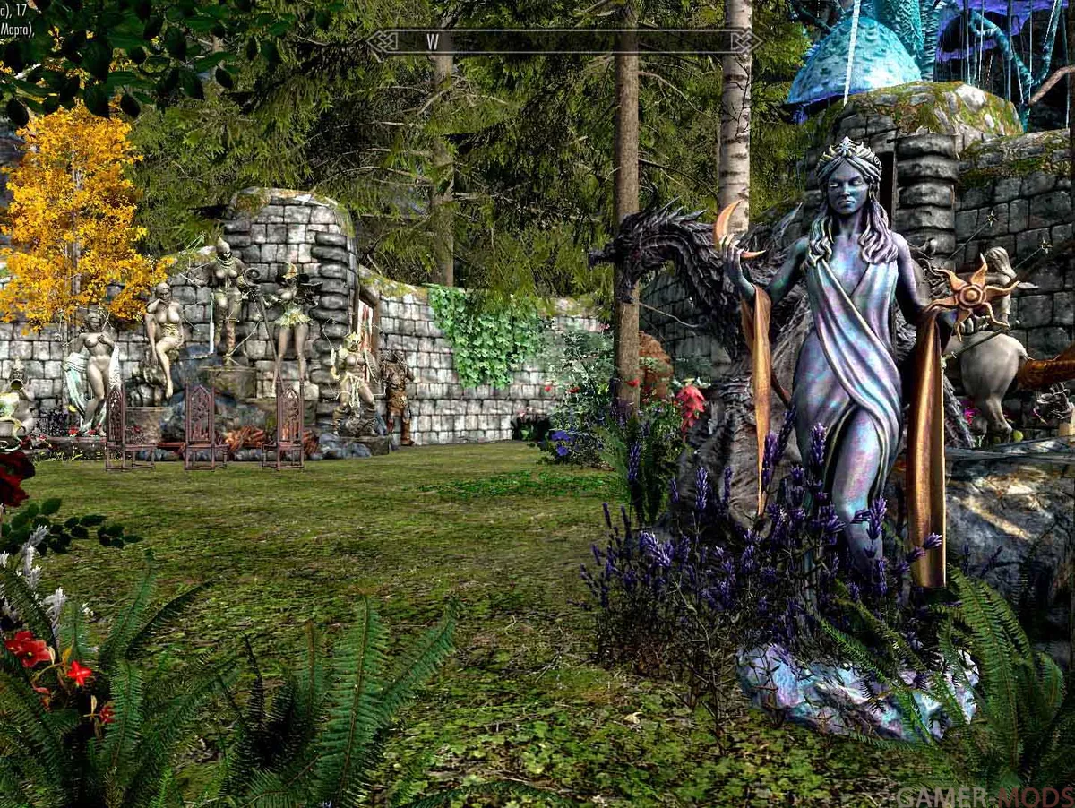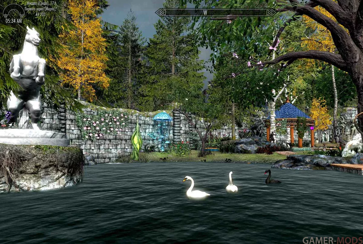 Видел, я туда уже лебедей Мишиных притащил и на скрине там Гремлин у меня уже живёт. Шкодный типчик. А бабочек от пакета Животные Скайрима штук 100.