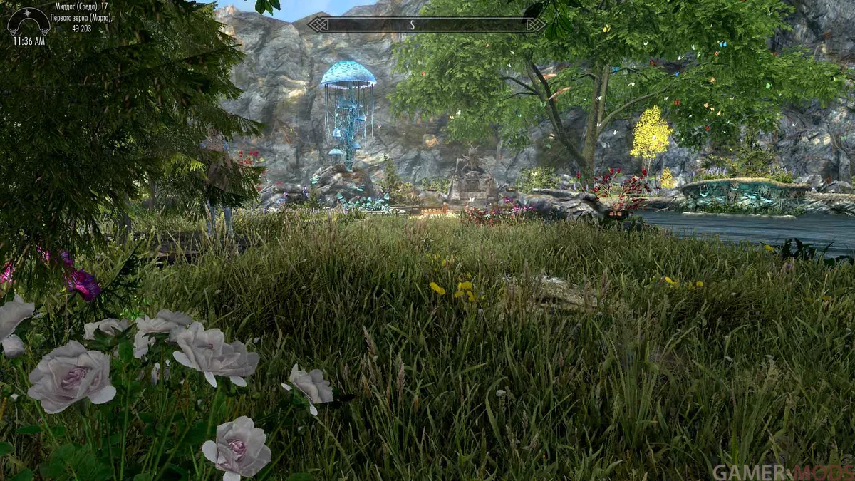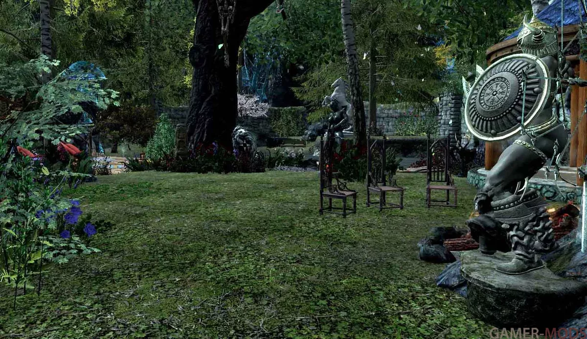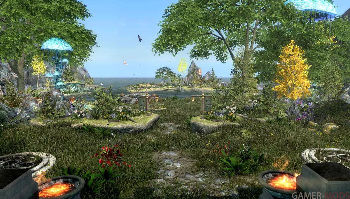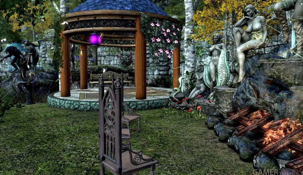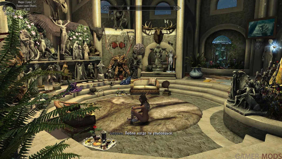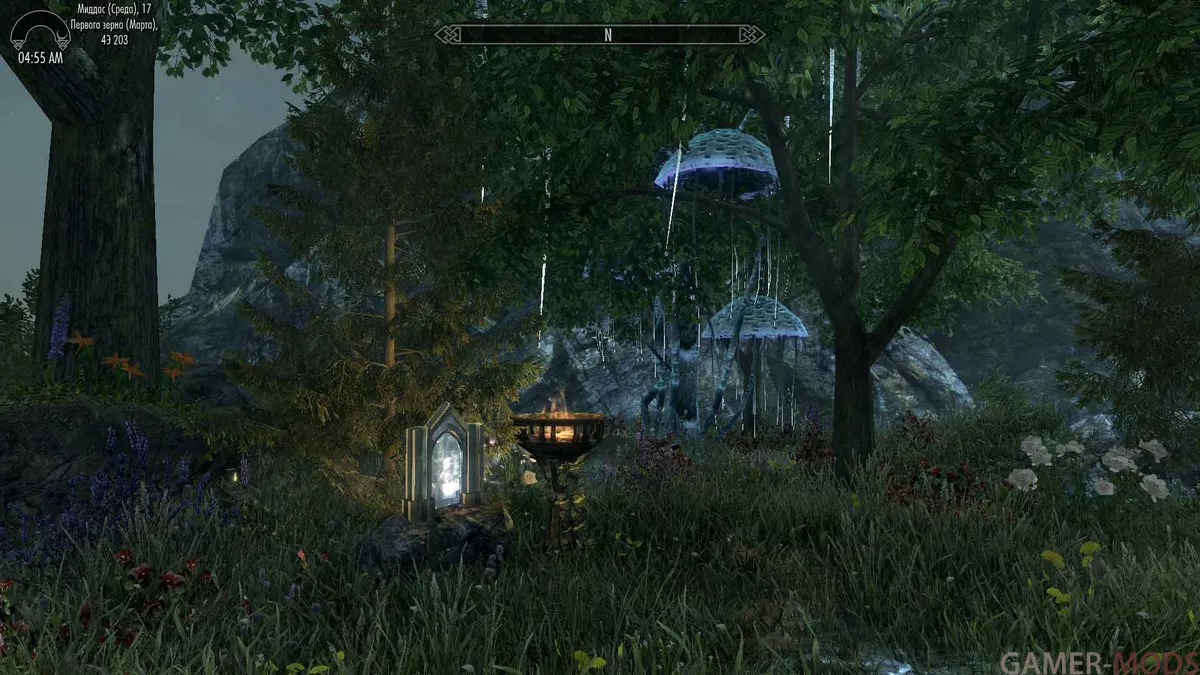 Видел, я туда уже лебедей Мишиных притащил и на скрине там Гремлин у меня уже живёт. Шкодный типчик. А бабочек от пакета Животные Скайрима штук 100.