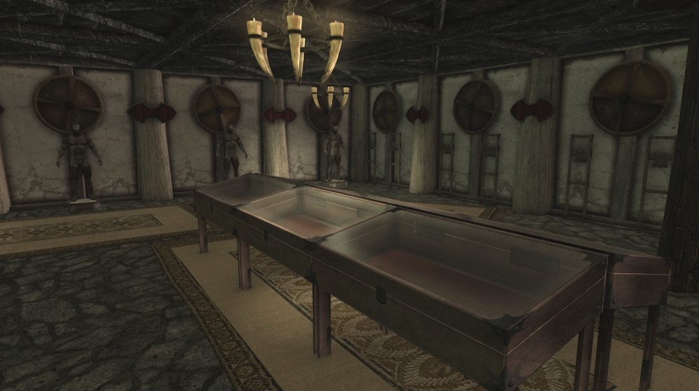 В доме достаточно места для 4 детей, жены/мужа и 3 компаньонов, есть все основные верстаки, за исключением зачарователя посохов и камеры для паучьих свитков. Много стоек для оружия, витрины и манекены. В наличии именные места для хранения всей вашей добычи, чтобы поддерживать порядок, но автоматического хранения нет. А для тех, кому всё равно, куда попадут ваши вещи, есть множество безопасных бочек, мешков и сундуков, куда можно что-нибудь сбросить. В доме есть потайная комната для демонстрации некоторых интересных вещей, которые вы можете собрать во время своих путешествий. Отдельный интерес это библиотека, которая может вместить много книг. Снаружи есть конюшня на одну лошадь. Иногда вы можете найти свою лошадь внутри, но обычно она стоит прямо перед ней, подвергаясь воздействию суровых погодных условий Скайрима. Снаружи есть терраса, сад с клумбами и старая башня, где любят играть дети.
