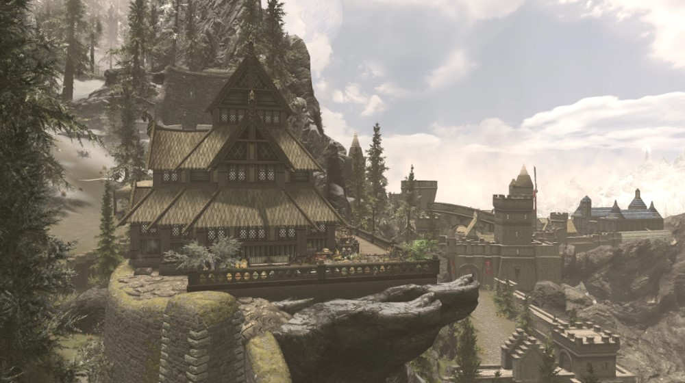 Поместье Харборвью расположено на горе над фермой Катлы в Солитьюде. На ступеньках есть записка с объяснением, у кого можно купить дом, а цена зависит от вашего навыка красноречия. Так что, вы можете купить этот дом или жить там "менее" законно, например: зломать зверной замок