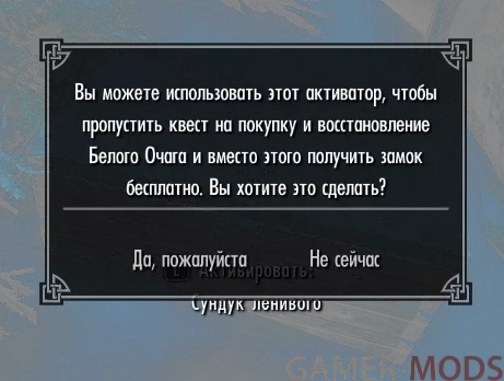 Если вы СКОРОСТРЕЛ))),то завладеть Белым Очагом можно сразу и бесплатно, поищите нужный сундук, чтобы пропустить квест.