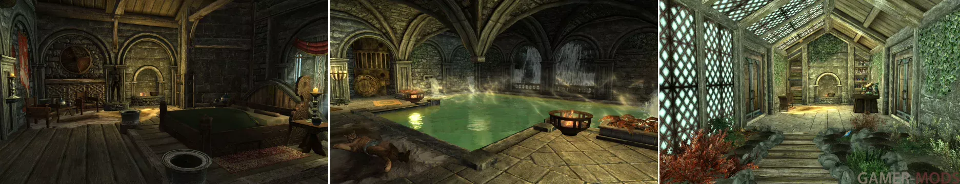 - Размещение до 35 подписчиков и шести детей (обратите внимание, что необходимы моды вроде Hearthfire Multiple Adoptions и My Home Is Your Home (MHIYH 2PLUS) )