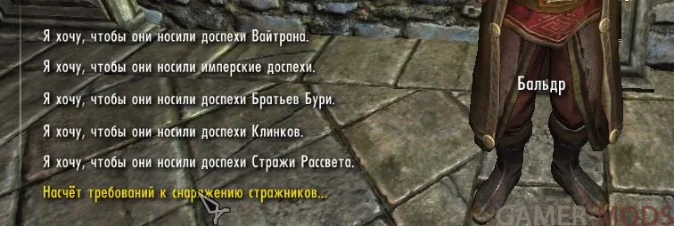 - Гарнизон : после перестройки в Белом Очаге по умолчанию будет 34 NPC. При полном составе вы сможете разместить двух своих последователей в гостевой комнате. Вы можете освободить больше места для своих последователей, уволив 6 потенциальных спутников (спальня наверху), 11 сотрудников (спальни внизу) или всех 16 стражников (спальни в сторожке и башнях). Обратите внимание, что для размещения последователей здесь потребуется мод, например. Мой дом — твой дом (MHIYH 2PLUS) . Если вы передумаете, стандартных NPC можно будет нанять заново.