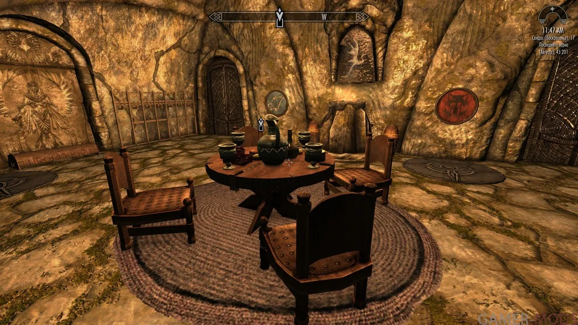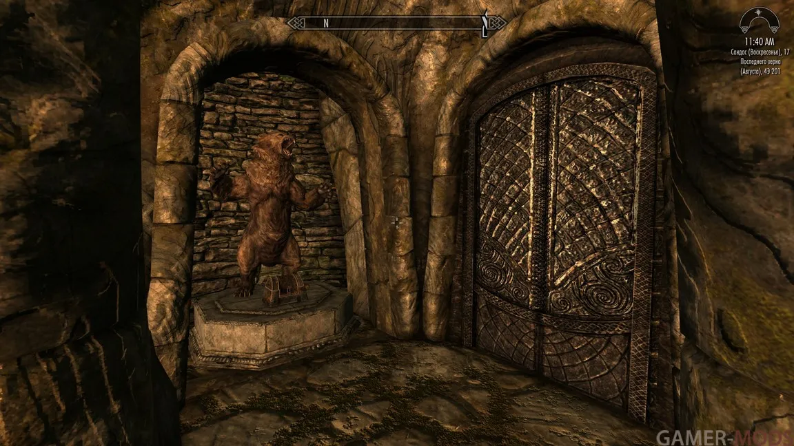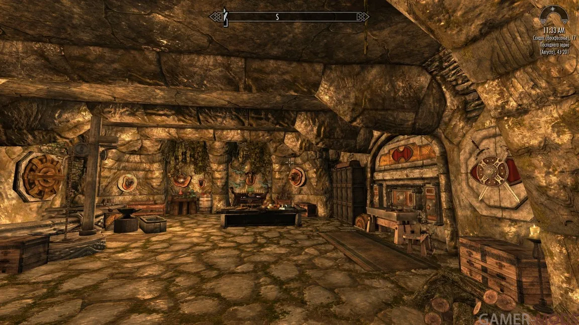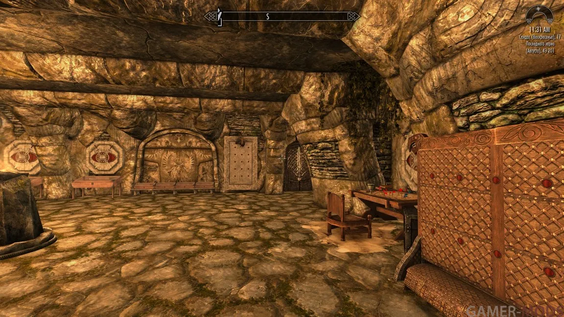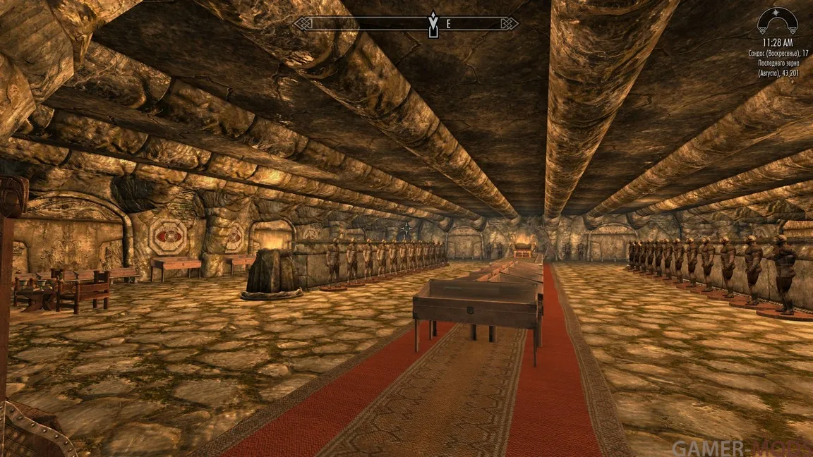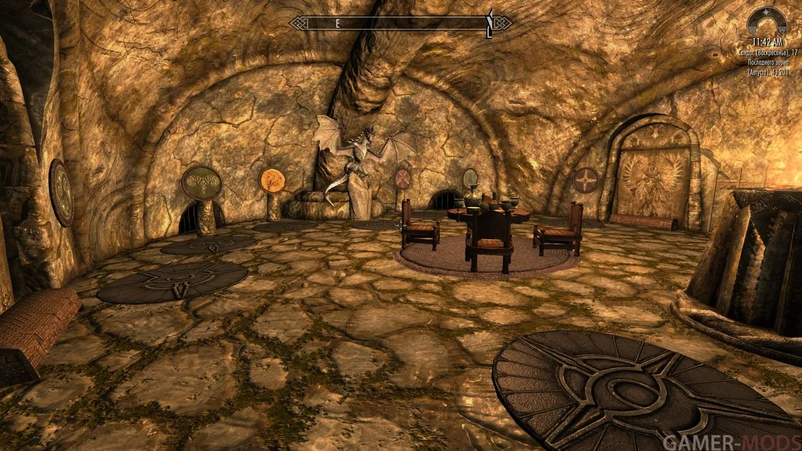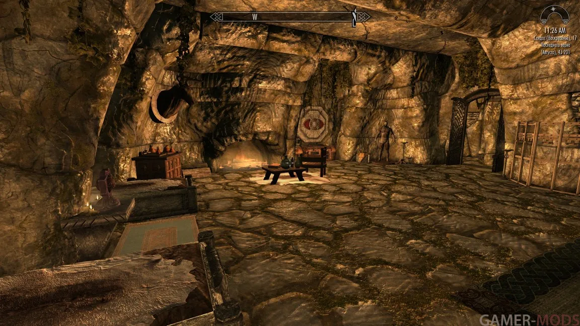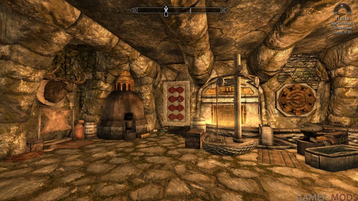 Авторский мод, добавляющий в Игру большой выставочный подземный зал Древненордского стиля с контейнерами, манекенами, стойками для оружия, витринами и оружейными стендами. Также включает очаг для готовки, зону крафта с Древней кузницей (аналог Небесной) и помещение для отдыха игрока со спутником. Имеется пара свободных столов для размещения иных, памятных игроку, предметов. Возле входа (сверху-сзади) добавлены 2 рудные жилы и кусты. Внутри имеется некоторое количество низкоуровневого оружия и ресурсов для крафта.