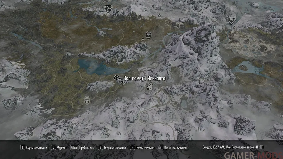 Изначально мод задумывался как расширение для поместья "Озёрное", но в дальнейшем получил портальную комнату с доступом ко всем основным владениям Скайрима. Двери в основной зал заперты, но их можно взломать. Ключ от Зала памяти Илиналта вы найдёте на теле Хранителя среди тел послушников у святилища Талоса неподалёку. Подробнее где оно смотрите в записке на столе в комнате Хранителя. Маркер этого святилища в SE-версии присутствует. Само тело Хранителя одето в уникальный, хоть и низкоуровневый, "тряпочный" набор зачарованной одежды. Зачарования стандартные, НО установлены на предметы одежды не предусмотренные изначально для наложения подобных зачарований. Сняв их на столе Зачарователя вы уже не поставите такие на подобные детали одежды (например "+Магия" на перчатки или "+Алхимия" на сапоги)!