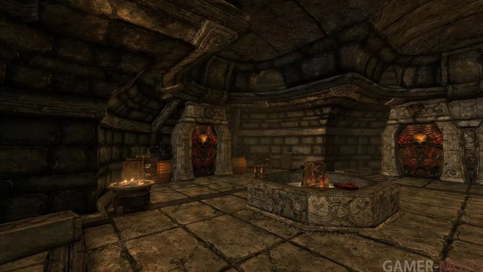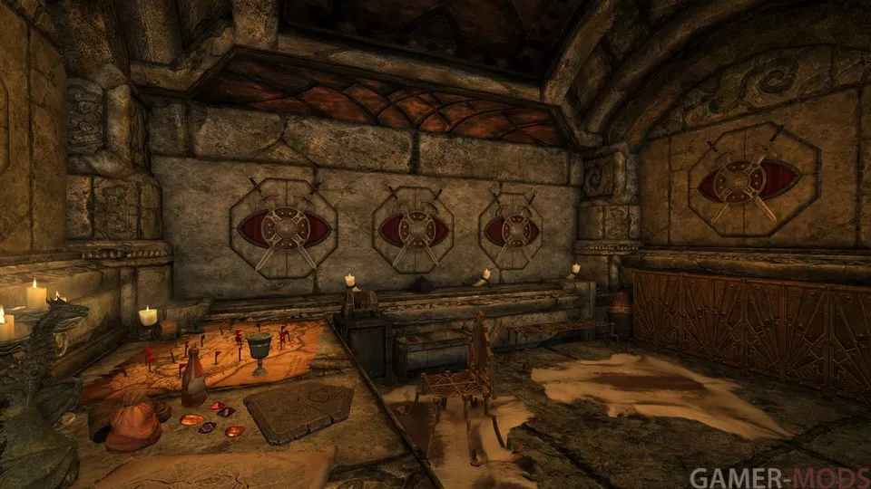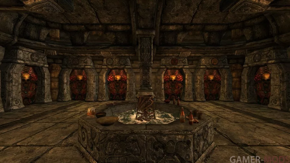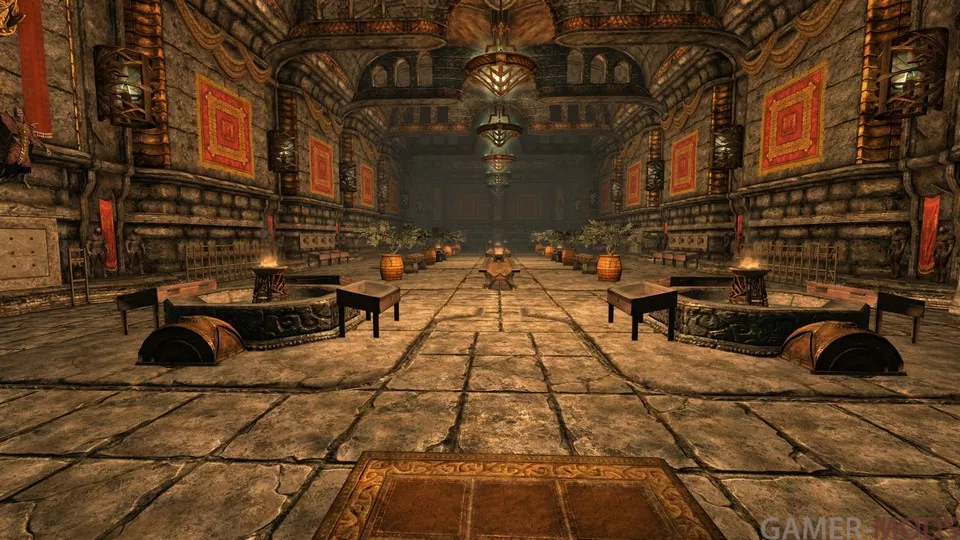 2. Изменено освещение Зала на более яркое, чем каноничное тусклое сине-зелёное двемерское.