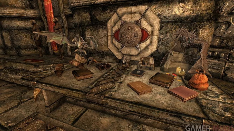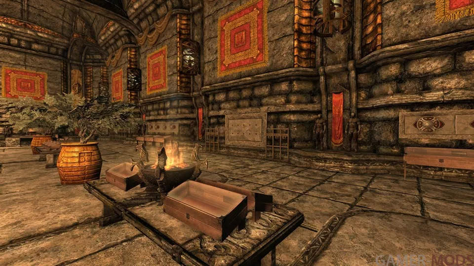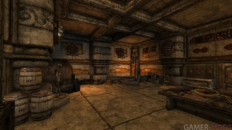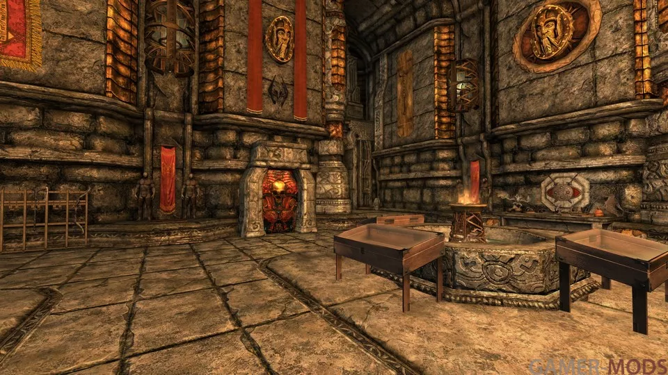 Авторский мод, добавляющий в Игру возле будущего поместья "Уинстад" выставочный подземный зал Двемерского стиля с контейнерами, манекенами, стойками для оружия, витринами и оружейными стендами. Также включает очаг для готовки, зону крафта с Древней кузницей (аналог Небесной) и помещение для отдыха игрока со спутником. Имеется несколько свободных столов для размещения иных, памятных игроку, предметов.