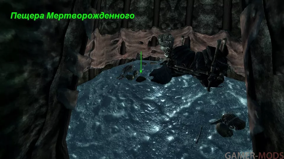 Виндхельм/Винтерхолд - примерно на полпути из одного в другой возле пещеры Мертворожденного, в скалах чуть выше дороги.
