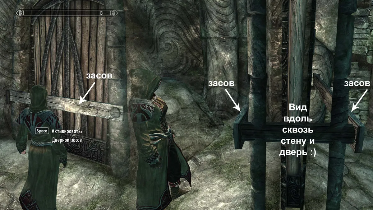 Этот мод даёт возможность открыть и закрыть любой засов с обеих сторон двери. Как вы понимаете, это позволит попасть в те части локации, в которые зачастую попадать ещё рано. Я предупредил :)