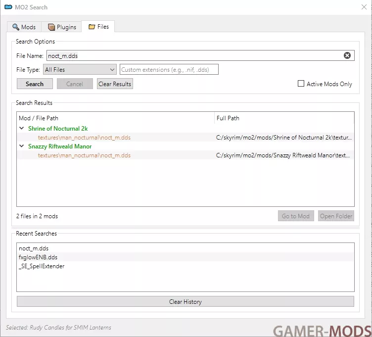 Плагин для Mod Organizer 2, который добавляет полноценный поиск по модам, плагинам и файлам внутри модов.
