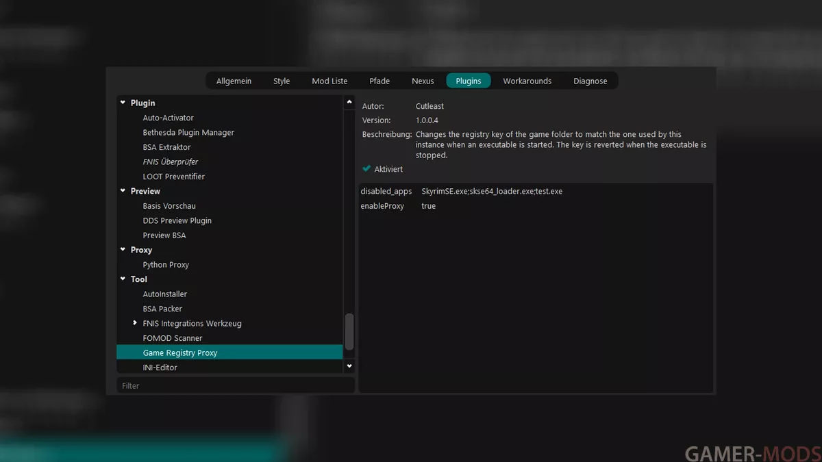Просто извлеките папку из ZIP-файла в папку «плагины» вашего MO2, т.е.: ModOrganizer\plugins\mo2-game-gaistry-proxy