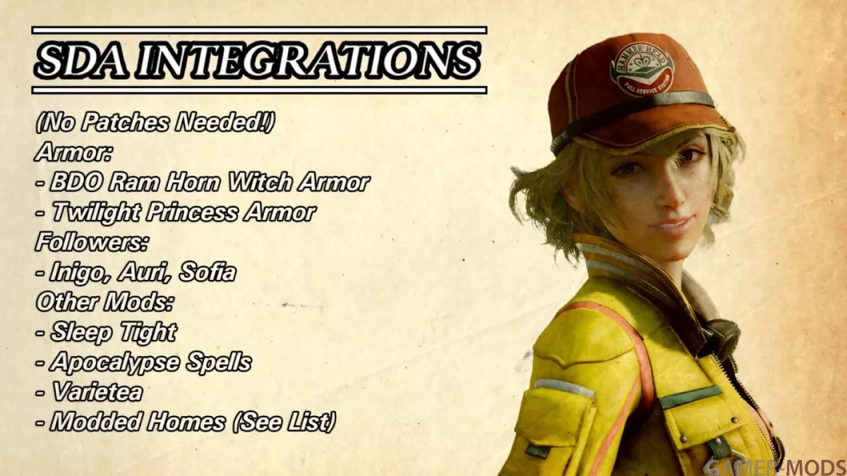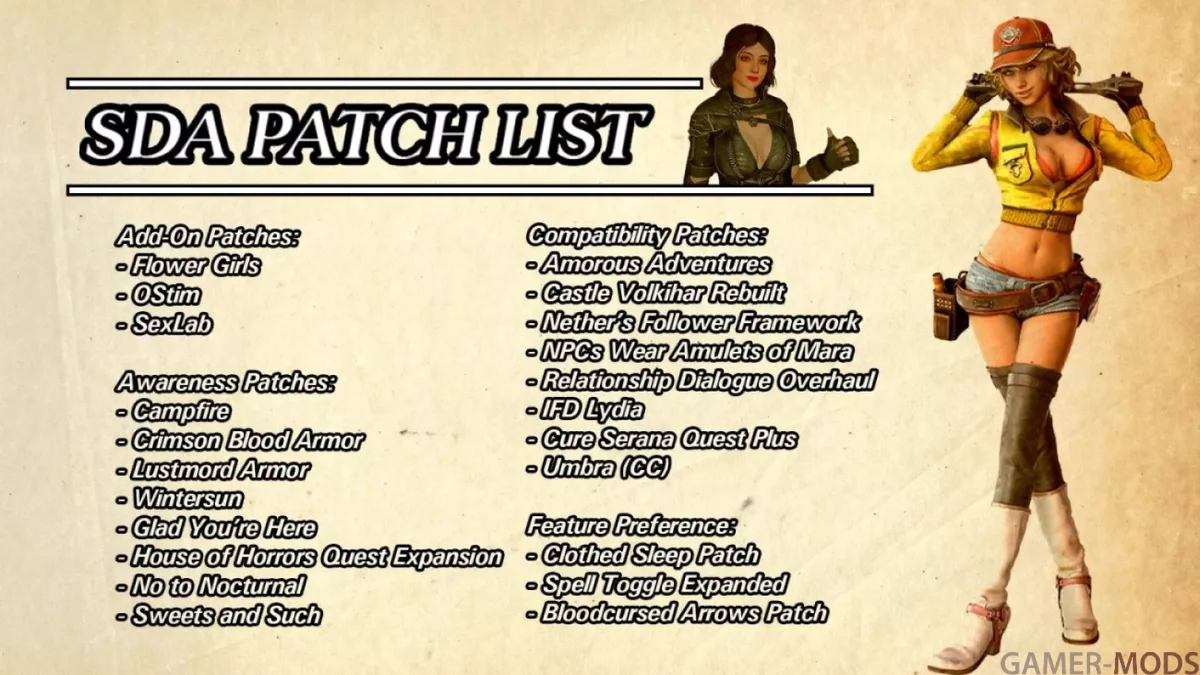 SDA был разработан с учетом совместимости, но в нем все еще довольно много контента. Этот «центр патчей» призван исправить это, предоставляя универсальный автоматический установщик «FOMOD» и страницу модов для всего, что связано с патчами SDA, сохраняя при этом основной сайт SDA таким же чистым, как и при стандартной установке.