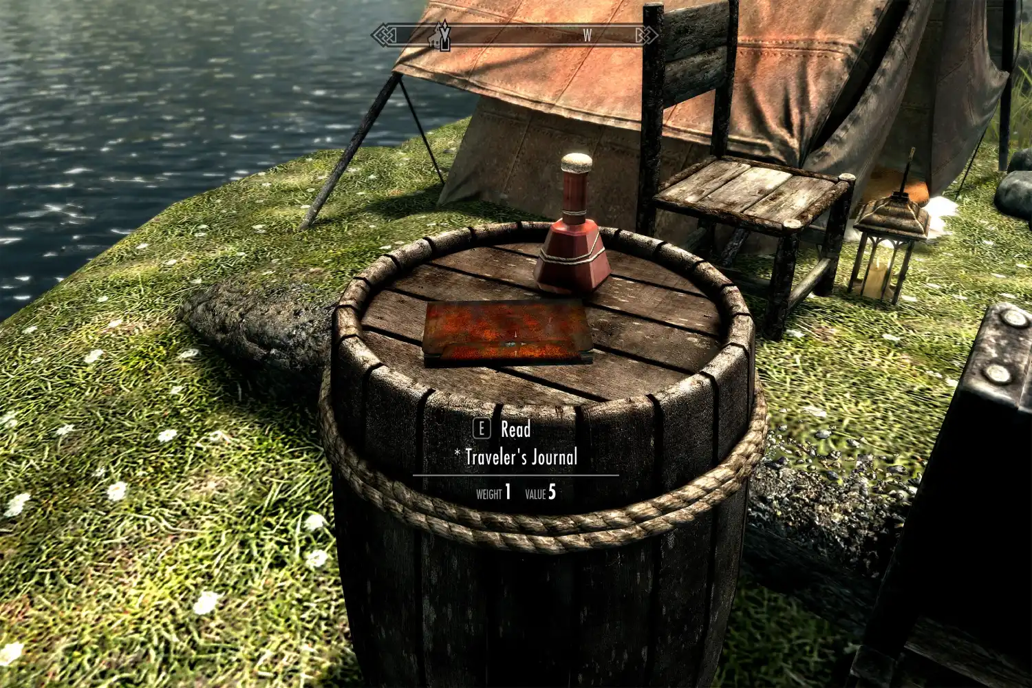 Обычный торговец всякой всячиной. Немного зелий, немного камней душ, всякая всячина которая может пригодится путешественнику. Рядом с палаткой можно найти дневник путешественника, который расскажет почему он решил разбить палатку именно здесь.