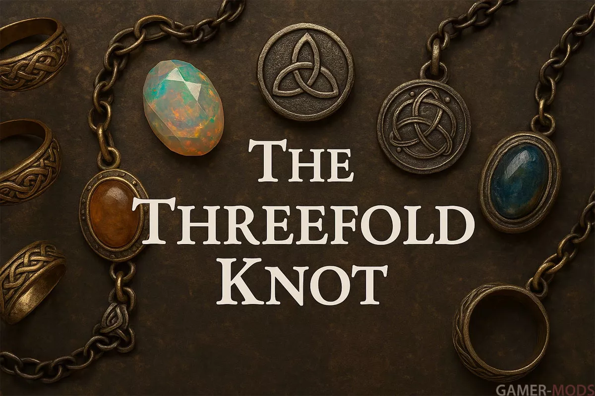 «Тройной узел» — полностью озвученный повествовательный квестовый мод, рассказывающий историю трёх сестёр — Анвен, Кален и Фенны Велтрис, связанных общим горем и проклятым артефактом. Игроку предстоит распутать их переплетённые истории, выполнить личные задания каждой из сестёр и, в конечном счёте, решить судьбу самого Пепельного Камня. Благодаря эмоциональной глубине, разветвлённым диалогам и атмосферному финалу, этот мод предлагает лаконичную, но впечатляющую историю о памяти, исцелении, выборе и прощении.