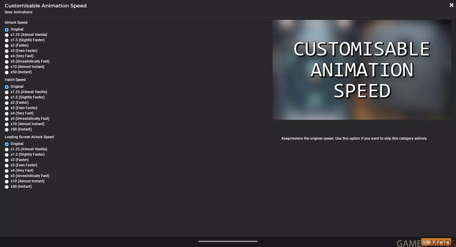 Мод поставляется с удобным установщике FOMOD с различными множителями скорости на выбор. Если вас не устроит первоначальный выбор, вы всегда можете переустановить мод и выбрать другой набор параметров.